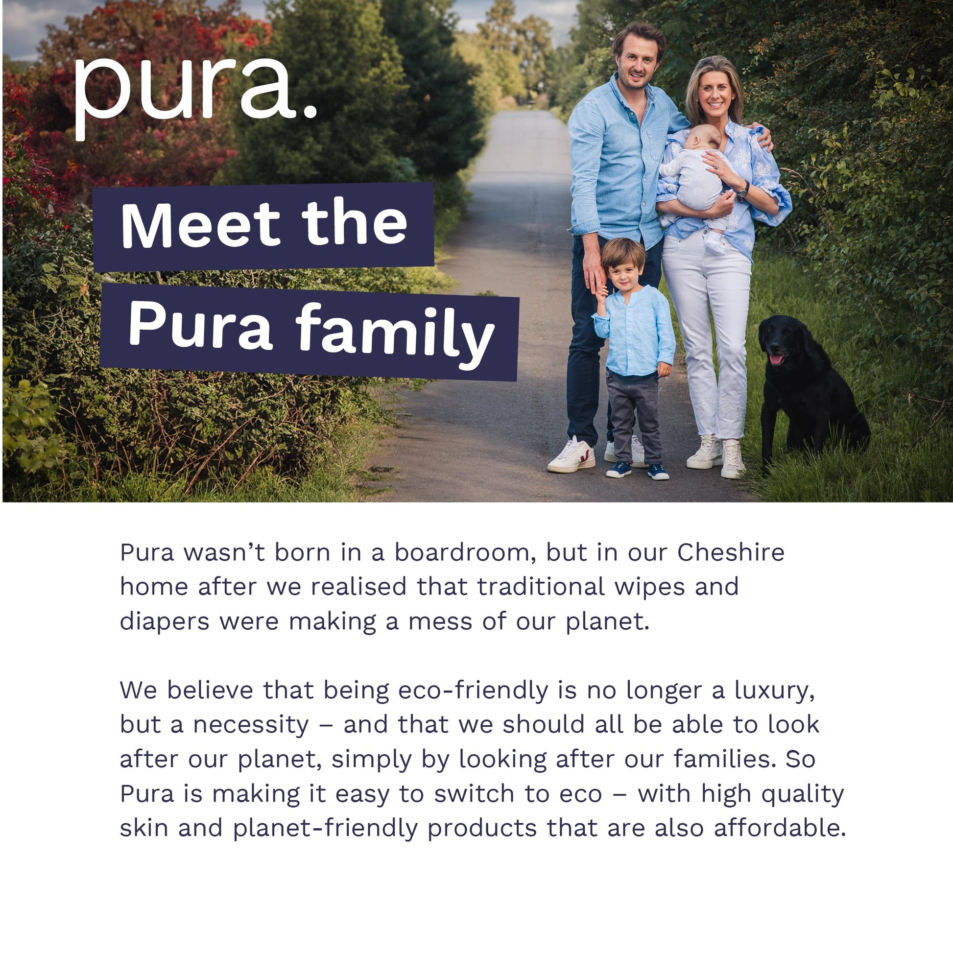 Meet the Pura family Pura didn’t start in a boardroom. It was born in the British home of Guy and Abi Fennell. Created by parents, for parents, Pura was founded to make clean, safe and planet-friendly products affordable for all. Pura is a Carbon Neutral business and a certified B-Corp.