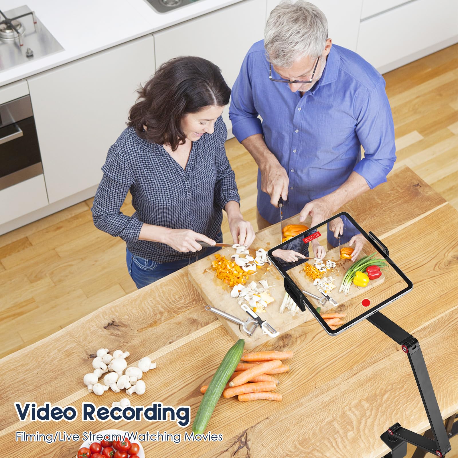 • Extended Long Arm---3 sections long arm tablet holder mount.Longer distance and more flexible.It is a good helper for you to use your tablet in various scenarios - watching movies, playing games,reading,viewing recipes,etc