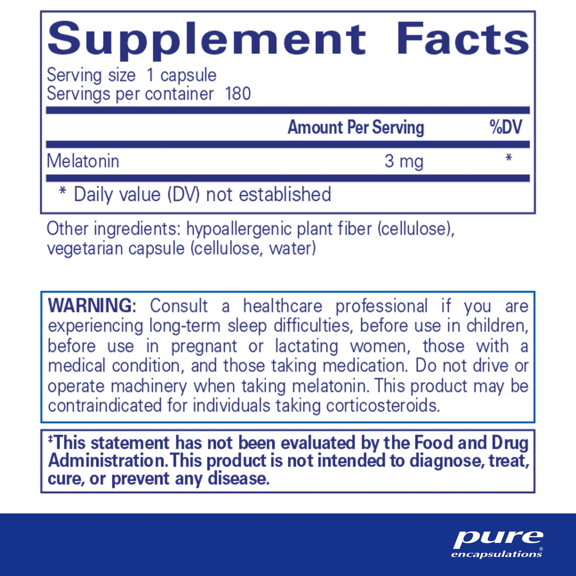 Pure Encapsulations Melatonin 3 mg - Antioxidant Supplement to Support Natural Sleeping & Relief of Occasional Sleeplessness - for Natural Sleep Support* - 180 Capsules