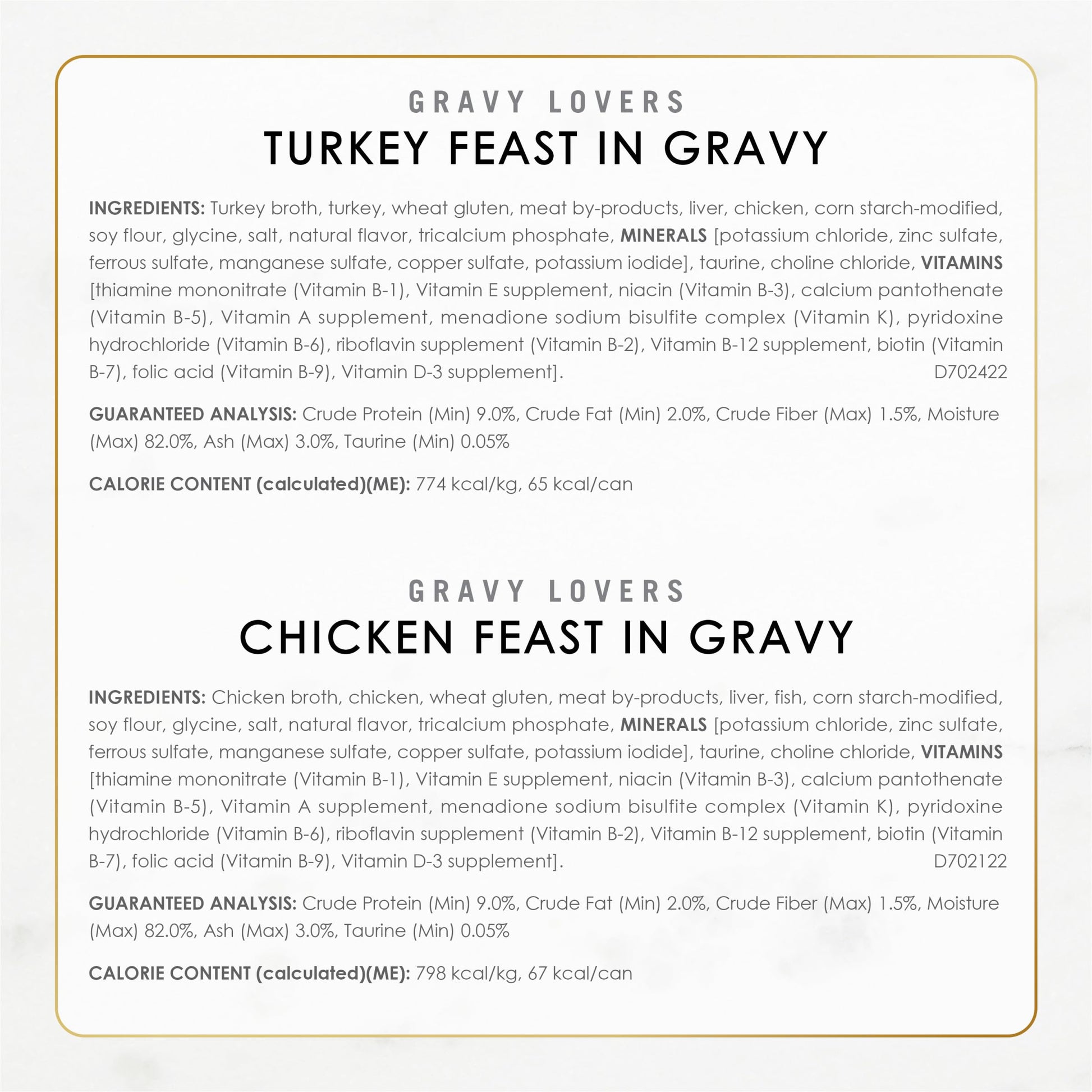 An irresistible, protein-rich Fancy Feast Gravy Lovers cat food taste offering a gourmet turkey, chicken or beef cat food meal with an enticing aroma and a light, savory gravy