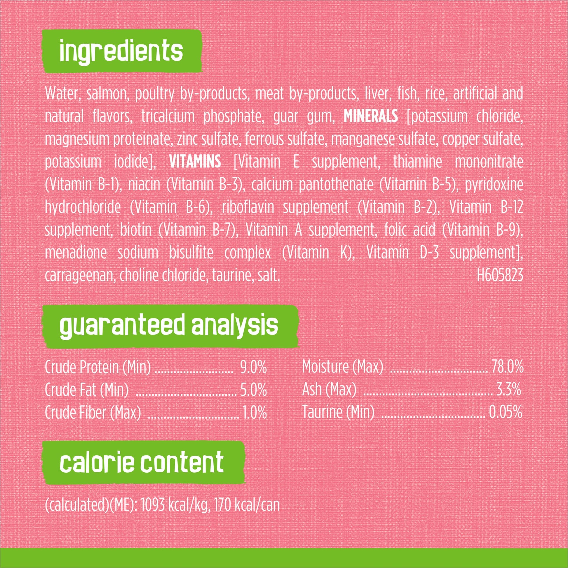 • 100 percent complete and balanced with salmon cat food pate nutrition for kittens and adult cats containing essential vitamins and minerals and no artificial colors or preservatives