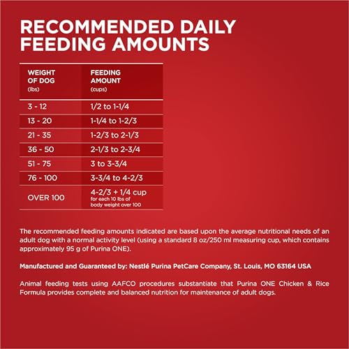 Details: Pick up that familiar red bag for meals inspired by the science of nature with Purina ONE Natural Chicken and Rice Formula With Added Vitamins, Minerals and Nutrients adult dog food. What are the ingredients in Purina ONE? Real chicken is the first ingredient in our high protein dog food to help support strong muscles. The SmartBlend of high-quality ingredients also includes prebiotic fiber for gut health and immune support. Plus, the natural dog food with added vitamins, minerals and nutrients for dogs has vitamins A and E to support bright eyes and natural sources of glucosamine for dogs to promote joint health. The crunchy dog food kibble with added calcium helps support strong teeth, too. With 100 percent nutrition and 0 percent fillers, this adult dog food features Purina ONE dog food ingredients that serve a purpose. Pick up that familiar red bag for the Purina ONE feeding chart, calories per serving, dog food ingredients list and instructions on how to switch dog food.