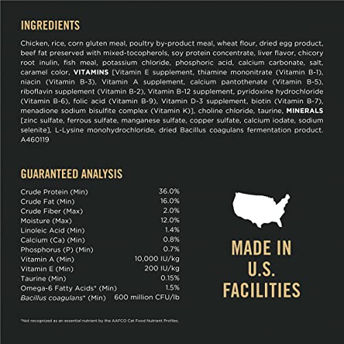Chicken is the first ingredient in this high dry protein cat food with rice to support muscle strength