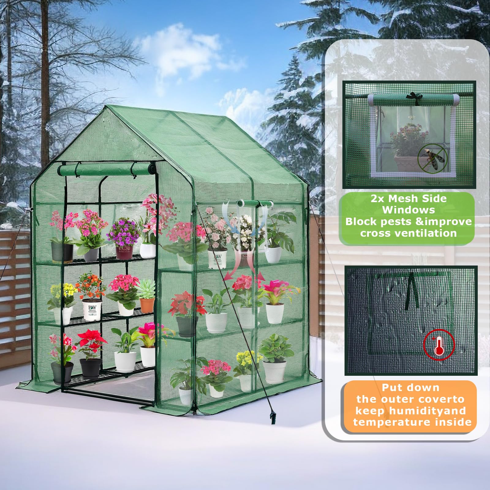 Purlyu Walk-in Greenhouse for Outdoors, Thickened PE Cover & Heavy Duty Powder-Coated Steel, Mesh Door & Screen Windows, 14 Sturdy Shelves 4.7x4.7x6.4 FT, (GHW002G)