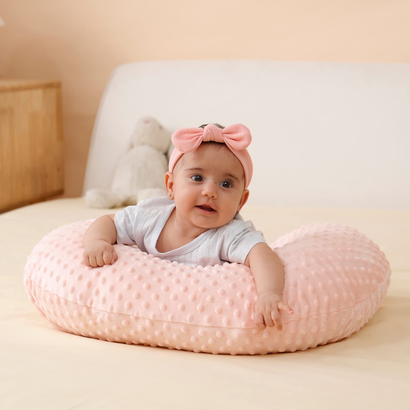 • BABY SAFE FABRIC: Our nursing pillow covers are made of Super Soft Premium Plush Dot fabric, using an exclusive process of weaving and brushing, creating a more gentle, softer and enjoyable sheet than ordinary fibers. Soft, breathable and hypoallergenic to the skin of your baby. Soft and breathable fabric that won't irritate your baby's skin.