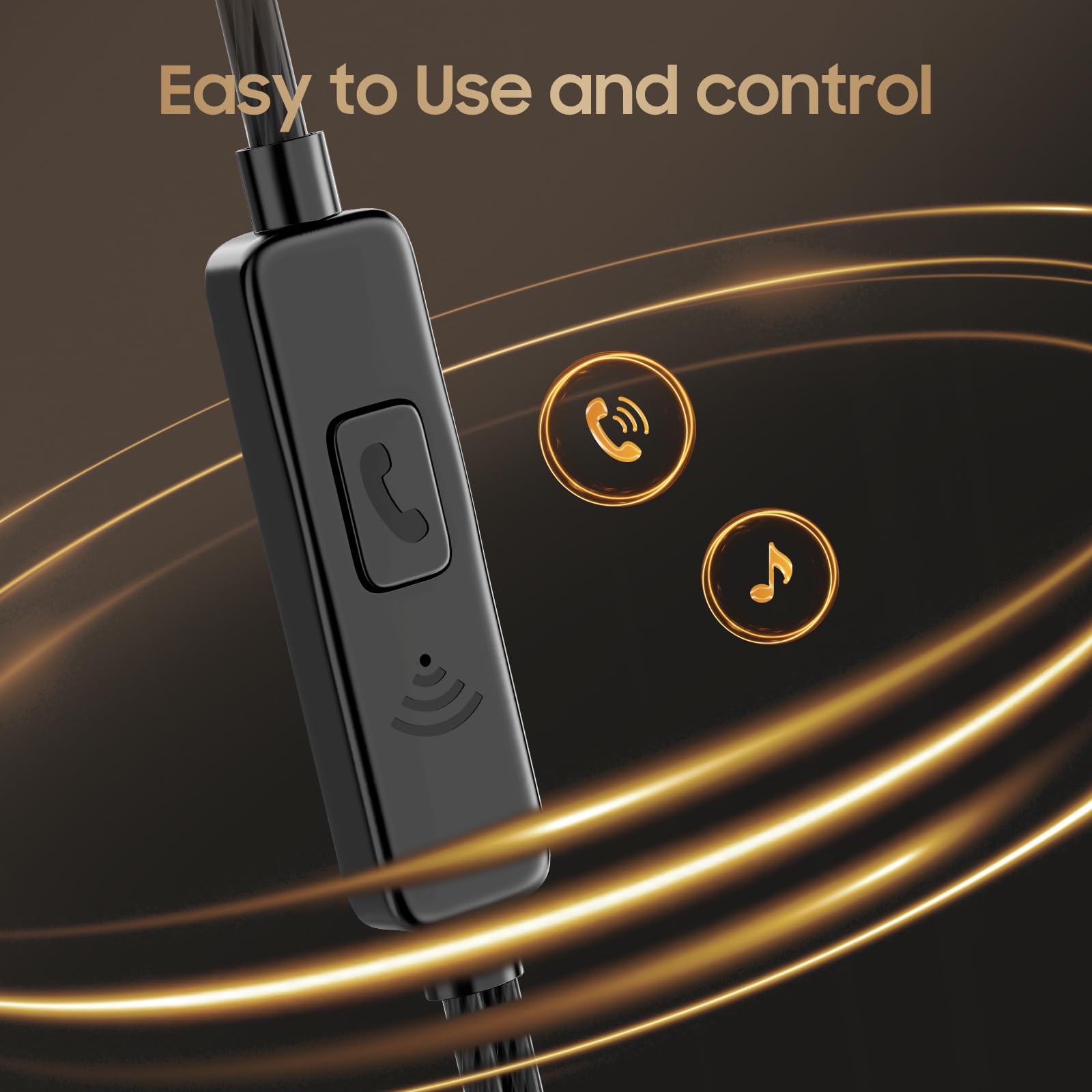 • {HD Mic & Multi-function Button}: headphones wired built-in HD microphone makes calls clearer, multifunctional button design supports answer/hang up/play/pause/next track/previous track without picking up the phone