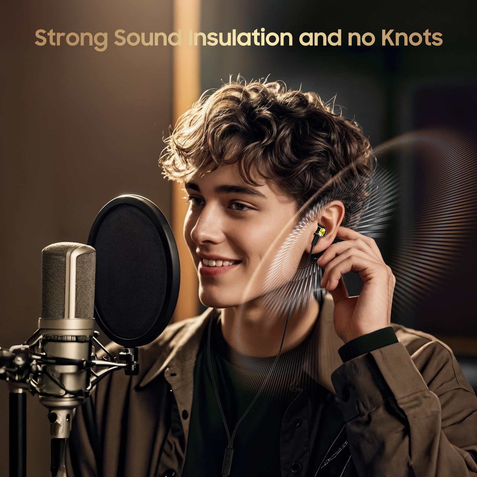 • {Comfortable In-ear Design}: The wired earbuds are designed as flexible and lightweight so you can wear them for a long time. The noise canceling earbuds is firm and will not slip off easily, Which is good for sleeping and outdoor travel