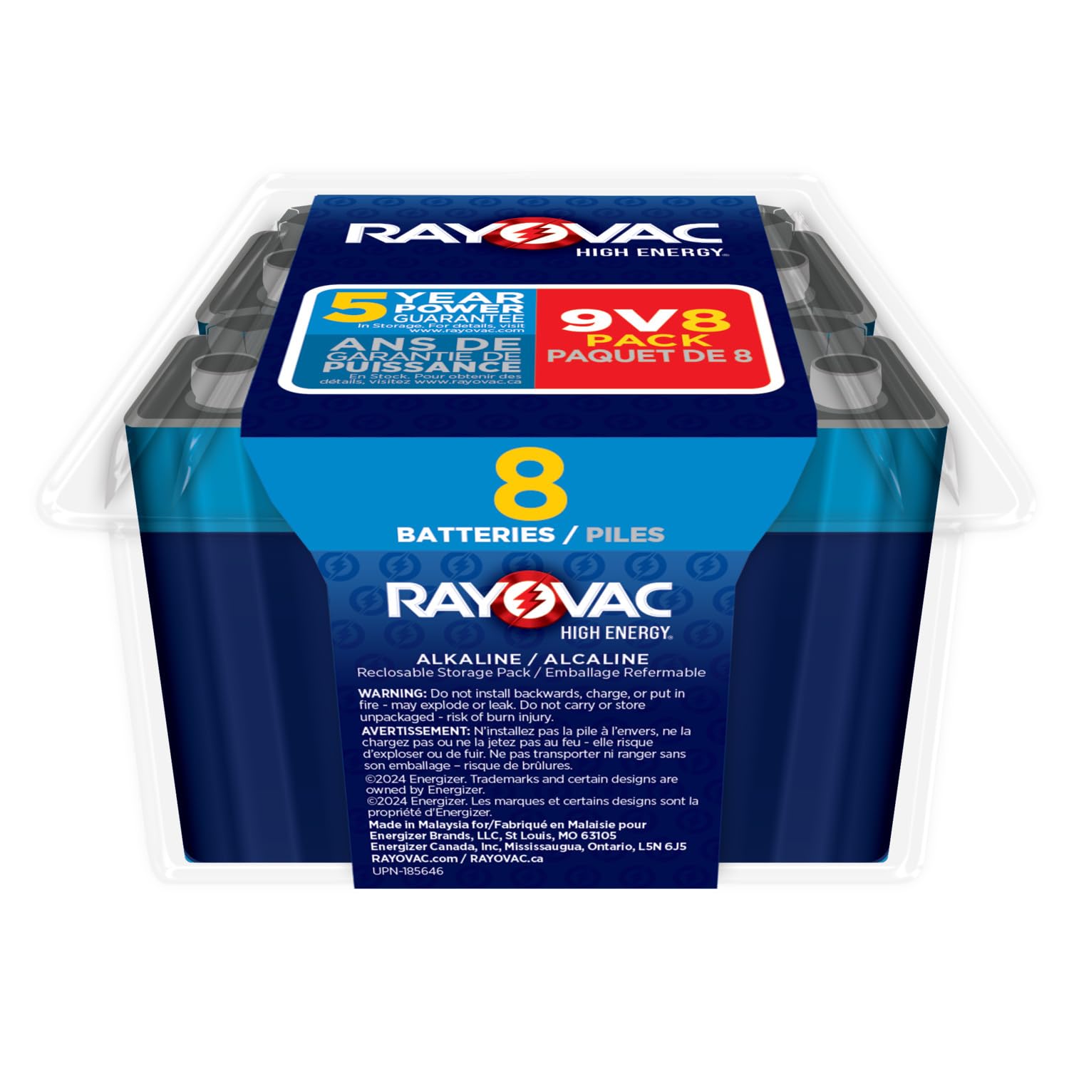 • 8 pack of Rayovac High Energy Alkaline 9 Volt Batteries