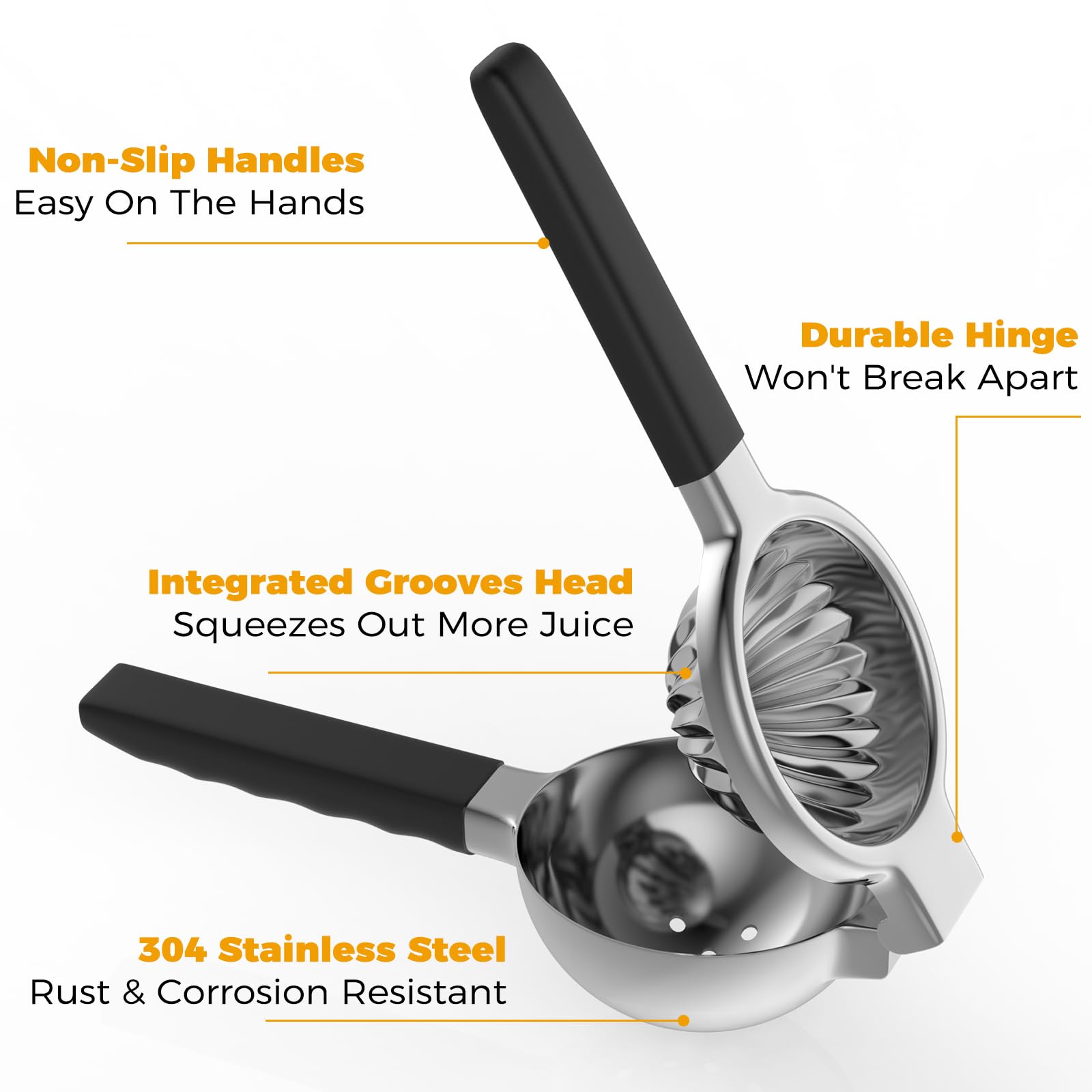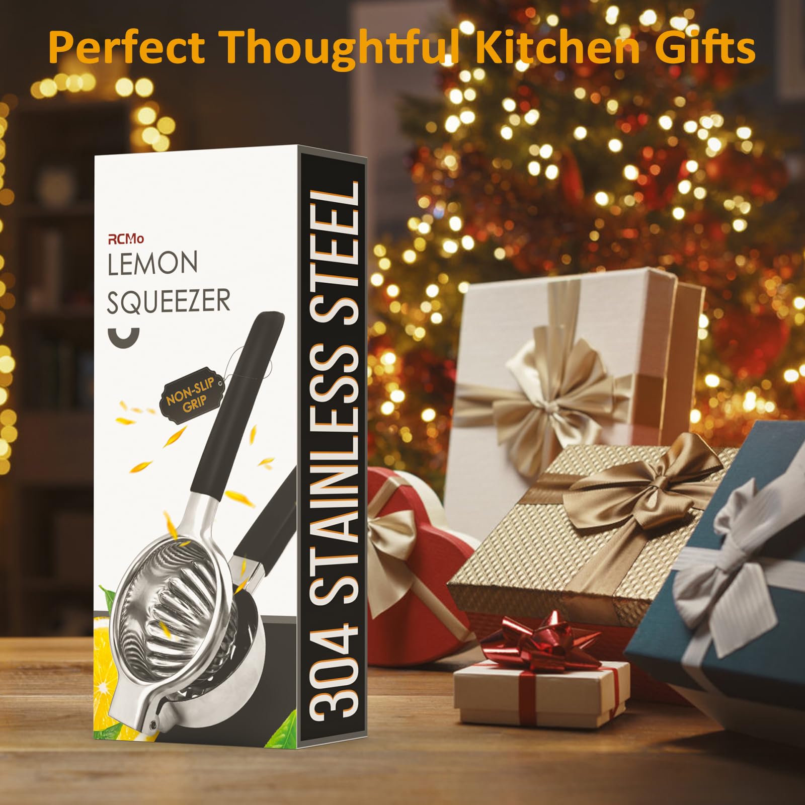 RCMo Stainless Steel Lemon Squeezer - Metal Citrus Juicer - Lime Lemon and Fruit Juicer with Silicone Handles - Large Manual Citrus Press Juicer - Hand Held Squeezer - Ergonomic Design with Solid