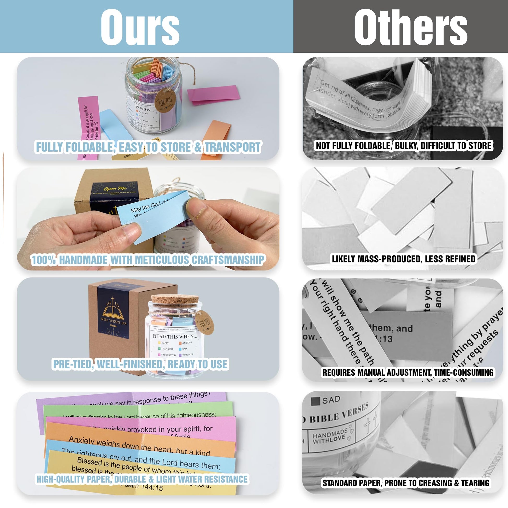 • 【Durable Glass Jar & Timeless Keepsake】 Crafted from quality glass for long-term use, this scripture jar is both beautiful and practical—a daily source of encouragement and a decorative reminder of faith in your home or office.