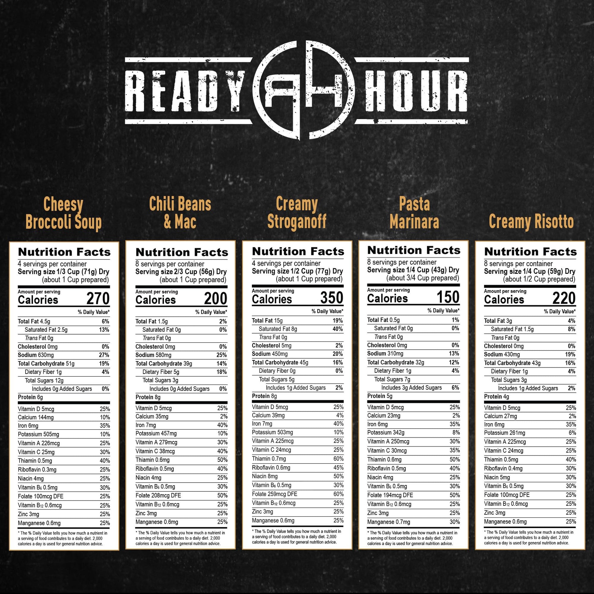 • TASTES GREAT: Ready Hour freeze-dried food is designed for emergencies but tasty enough for everyday use.