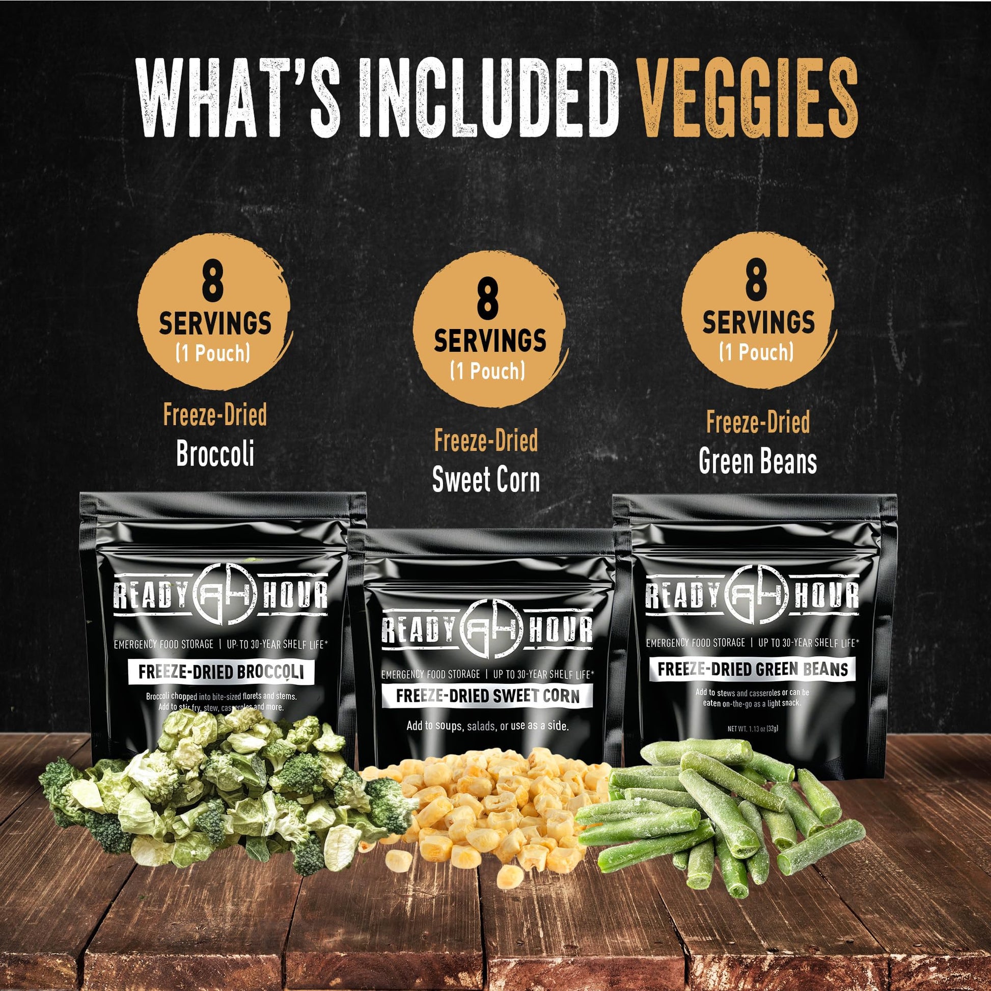 • TASTES GREAT: Ready Hour Freeze dried fruits and veggies are made for emergencies but tasty enough for everyday use.