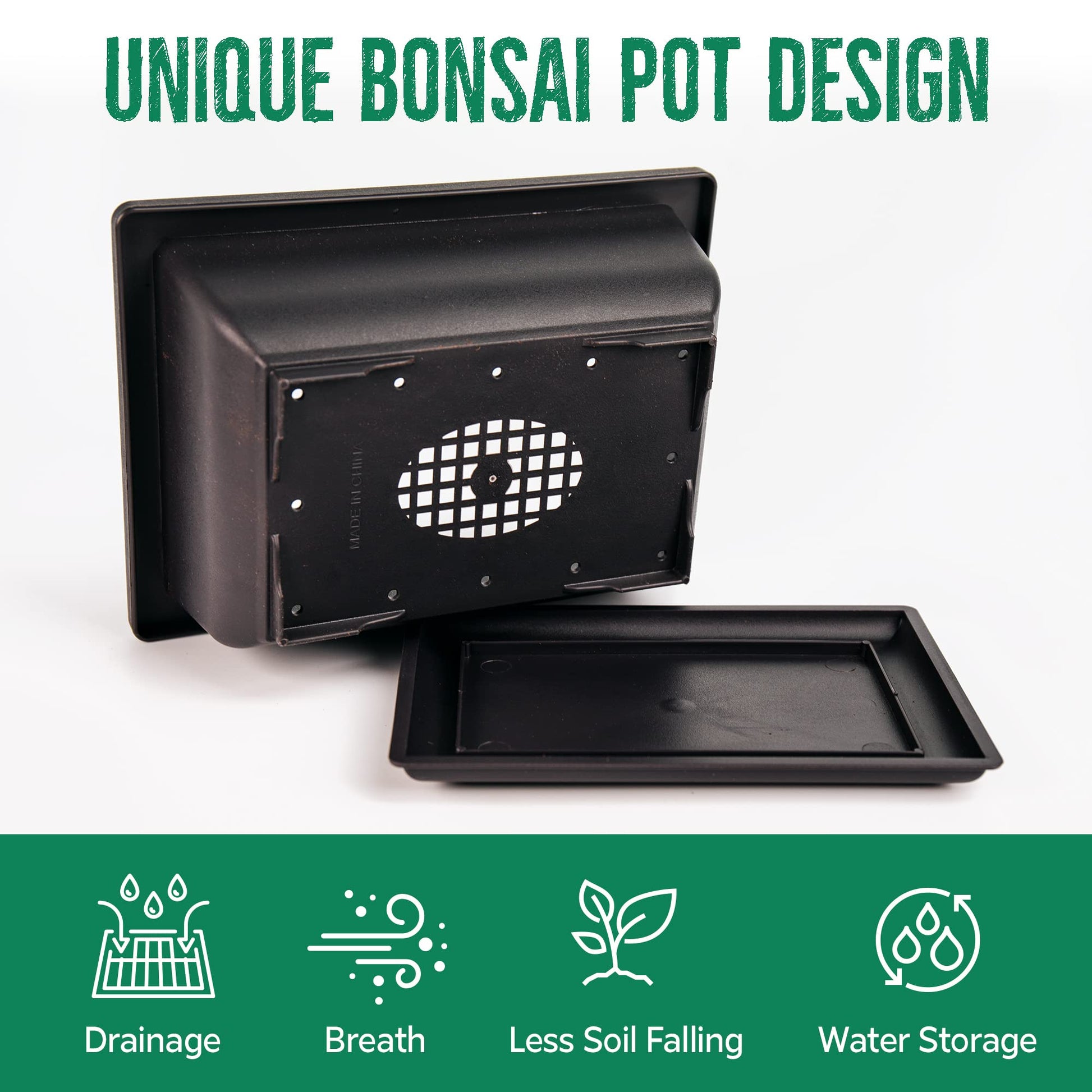 • MULTIPLE BONSAI VARIATIONS: Our bonsai tools kit features seeds from a variety of beautiful bonsai trees: Japanese Black Pine, Flame Tree, Blue Jacaranda, Purple Wisteria, White Magnolia, Sea Buckthorn, and Golden Rain Tree. Whether you're looking to brighten up your home or add a touch of nature to your office, our mini garden is sure to impress.