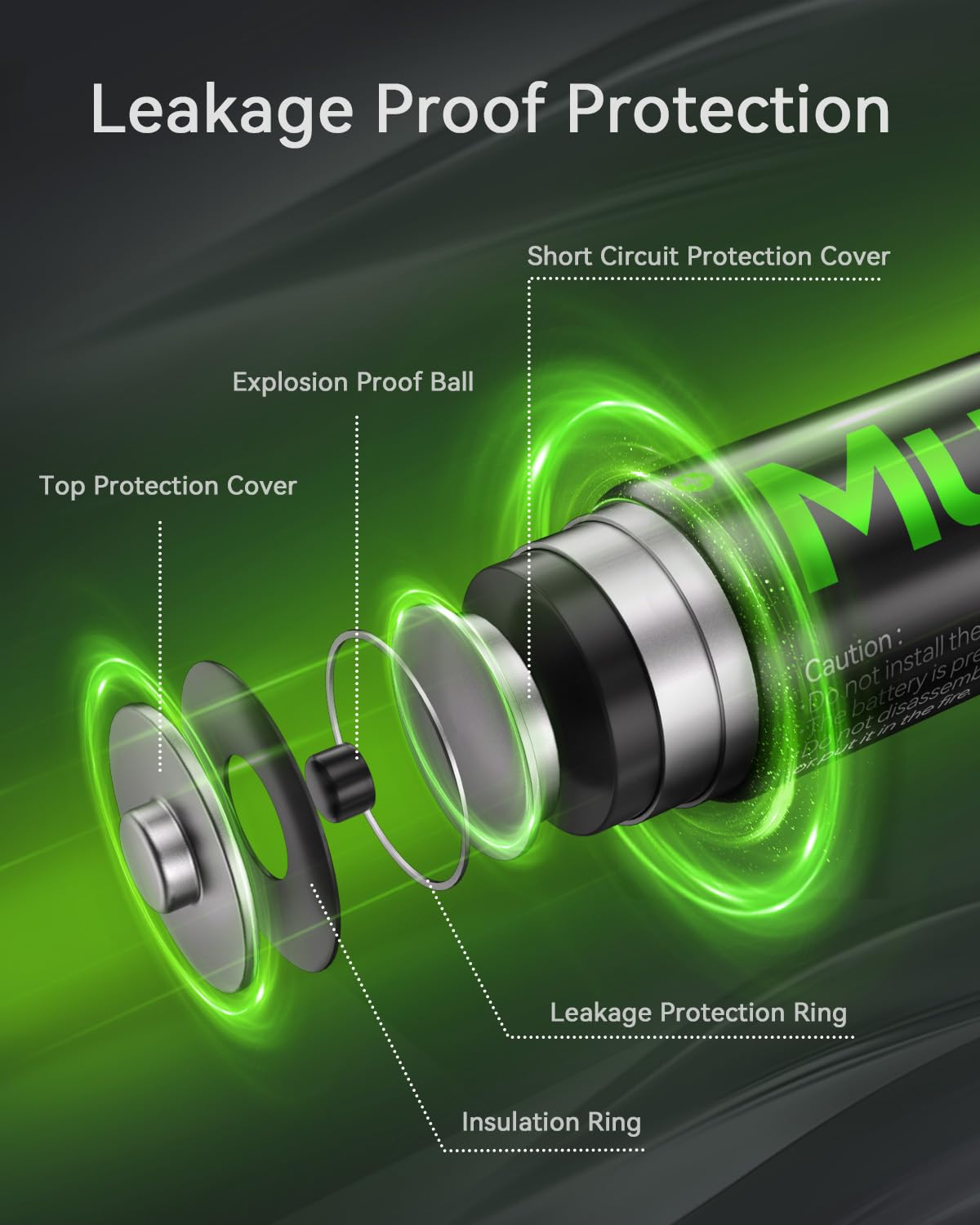 • 【High Capacity】: Mupoer AAA rechargeable batteries has a 1100mAh high capacity and provide ultra strong power, no longer to worry about the endurance of the batteries.