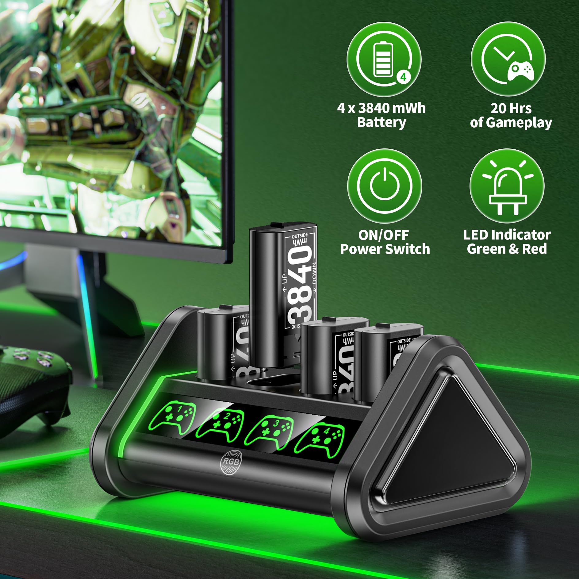 Rechargeable Battery for XboxOne/Xbox Series X|S, 4 x 3840mWh Xbox Battery, Xbox Series Battery Charger Station for XboxOne S|X /Elite Controllers