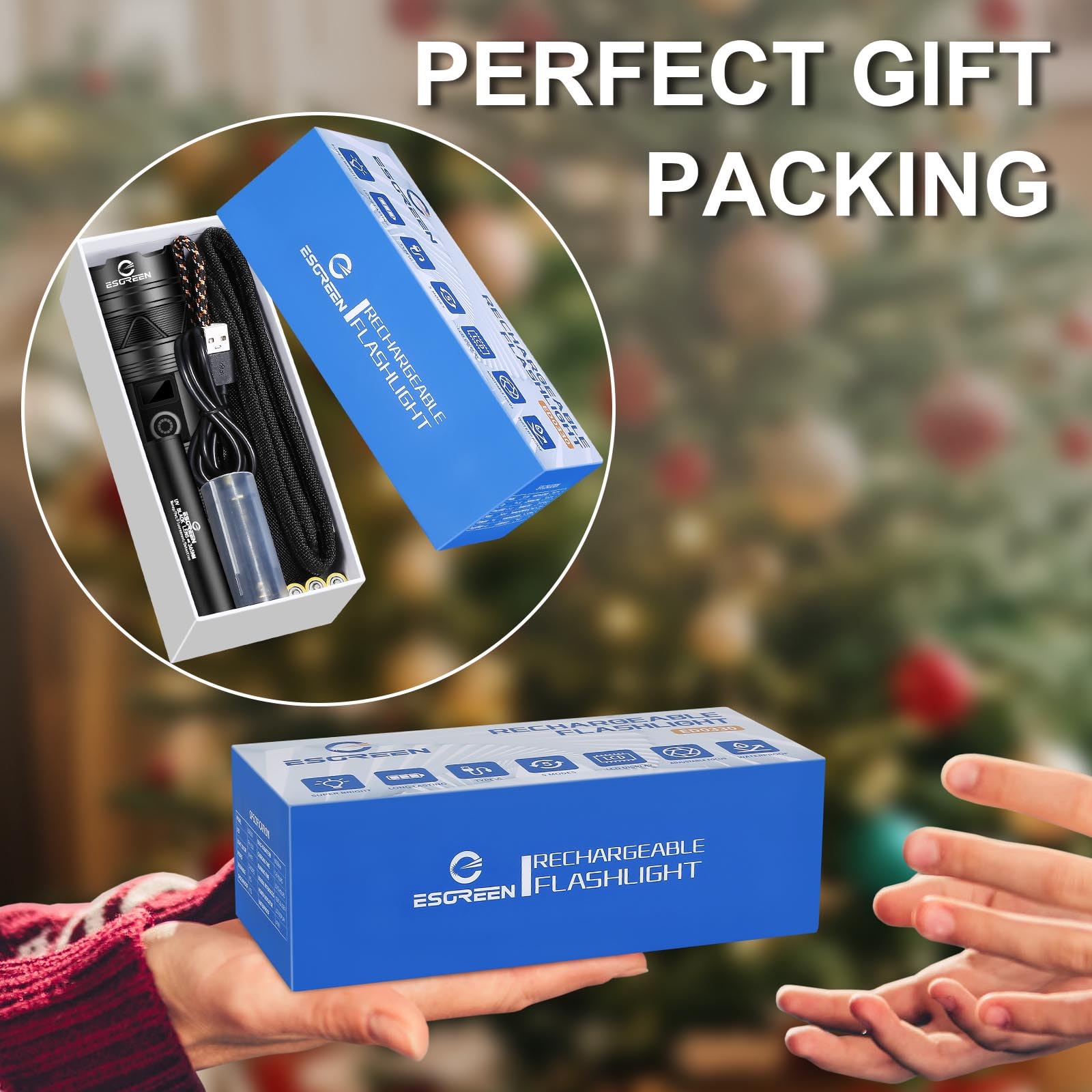 • [2025 UPGRADED HIGH BRIGHTNESS & LONG RANGE LED] The ESGREEN ED0330 rechargeable flashlights high lumens is made of a upgraded PH-L330 30W LED which has a feature of high brightness and ultra long beam. The high powered flashlight provides ultra high brightness, it can easily illuminate the whole room and backyard. The ultra strong beam provides high concentration circle beam, so it can easily and clearly focus on objects up to 5000 feet away. It is ideal for camping, hiking, dog walk, riding etc