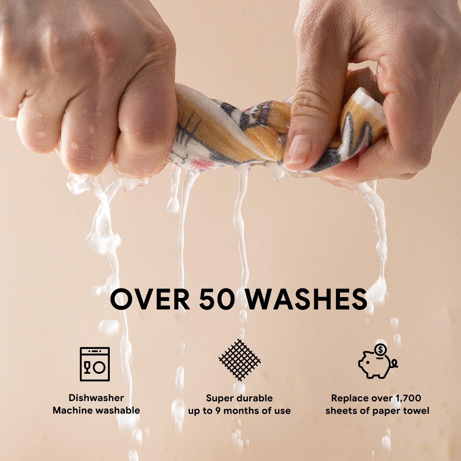 • Reusable & Save Money: Reuse our dishcloth is a no-brainer because of its ultra durability, it can replace 17 rolls of paper towels and effectively saves you up to $150 a year!