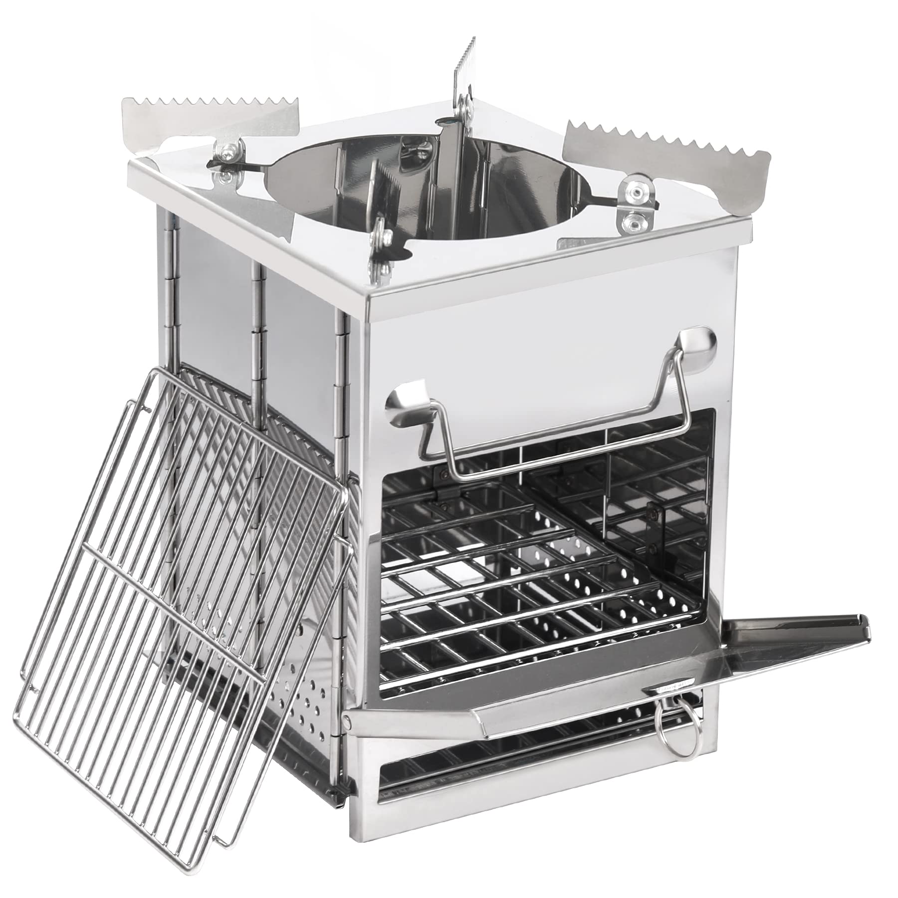 • Backpacking Stove: Eat well wherever adventure takes you with this camping stove wood grill. With a compact foldable design and a durable stainless-steel construction, this small wood stove makes it easy to prepare delicious meals and snacks on-the-go.
