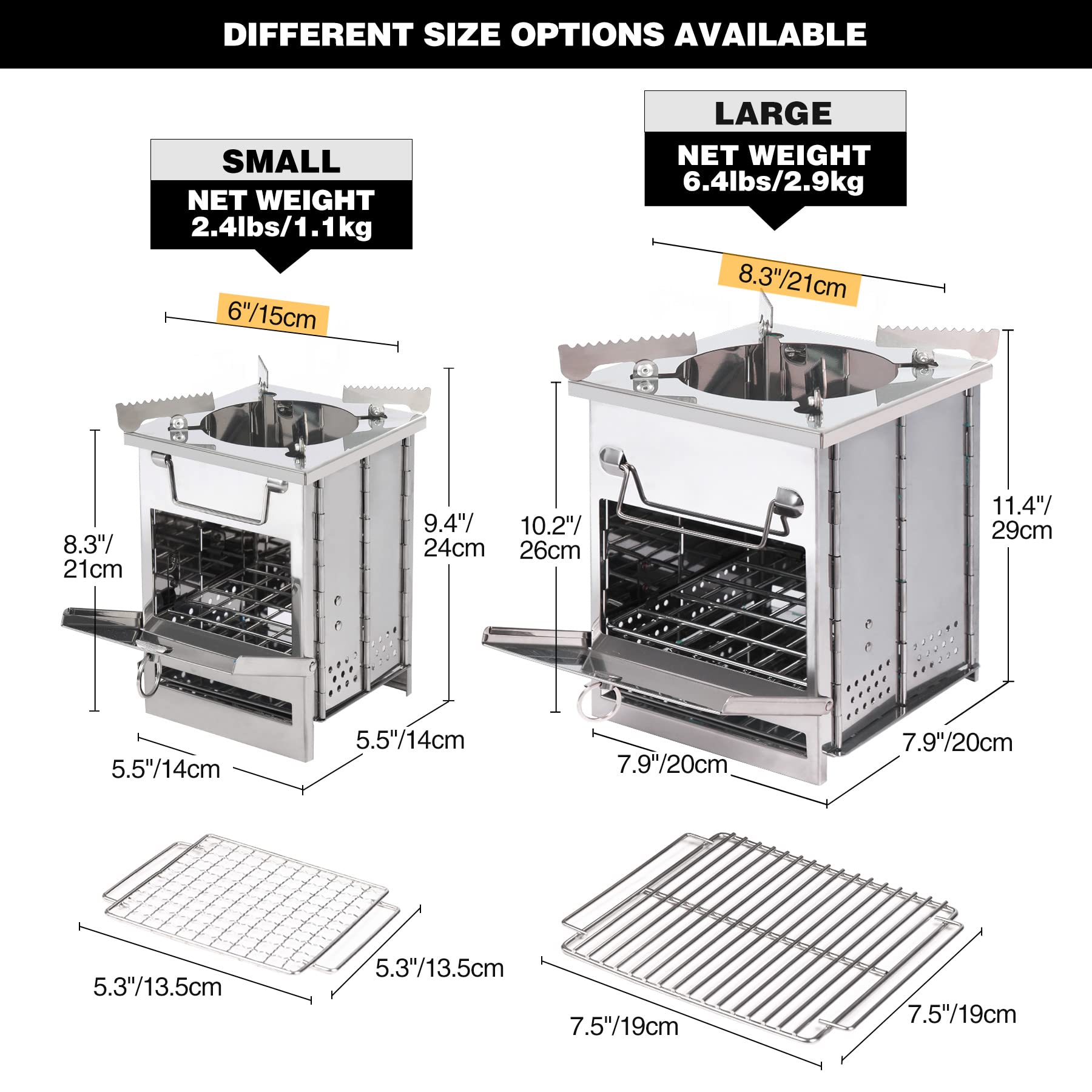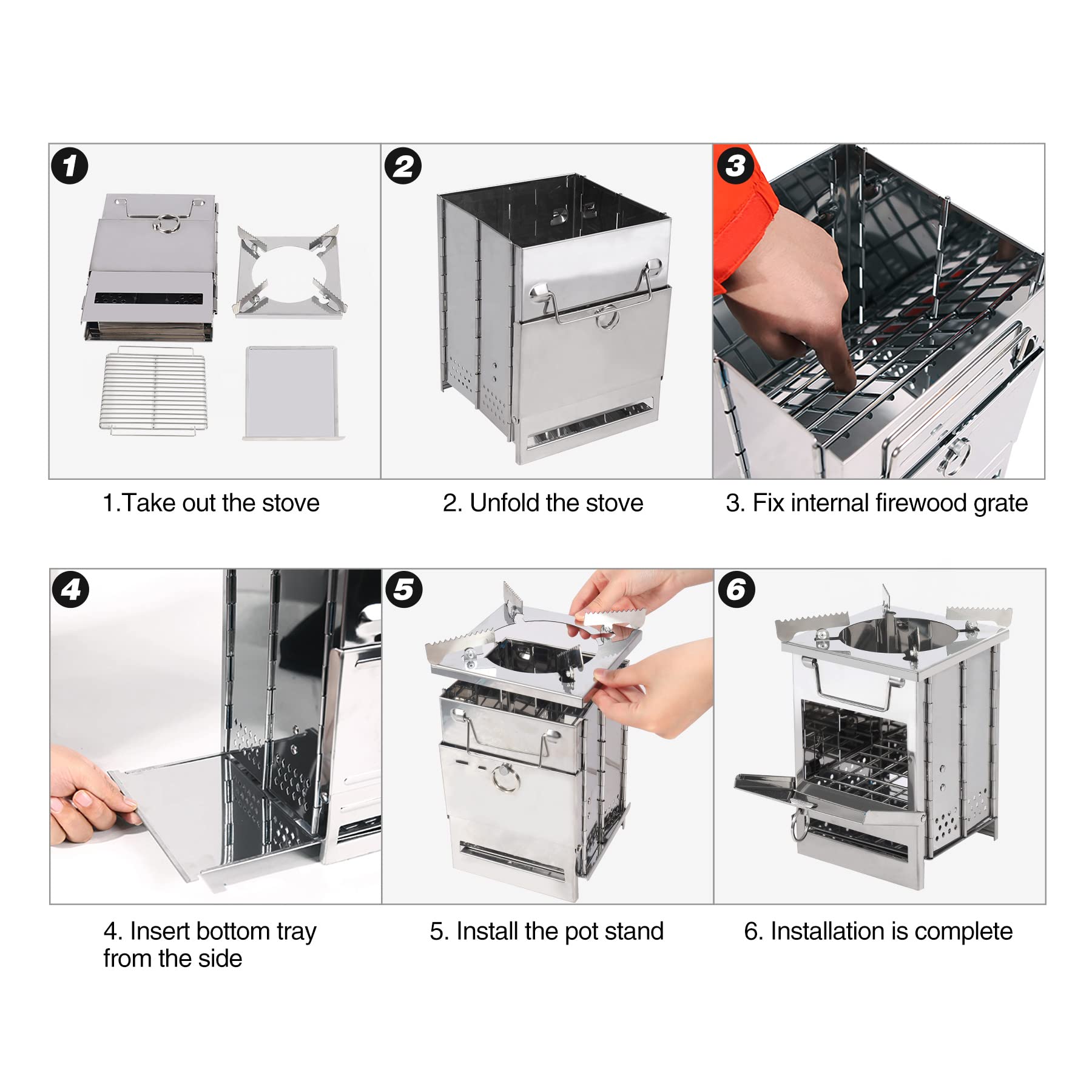 • Sturdy: The portable wood burning stove is made of high-quality stainless steel, which is durable, long lasting and easy to clean.