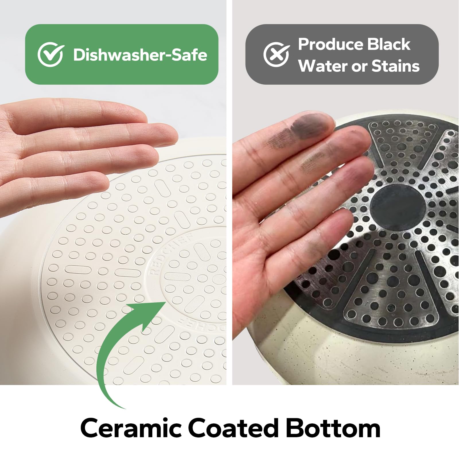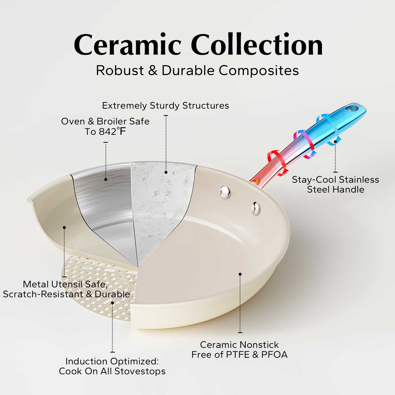 Redchef Nonstick Frying Pans Set, Ceramic Pan Skillet, Non Toxic Pans for Cooking, 8" 9.5" 11" Ceramic Frying Pan Set PFAS & PTFE & PFOA Free with Stay Cool Handle, Dishwasher & Oven Safe, Beige White