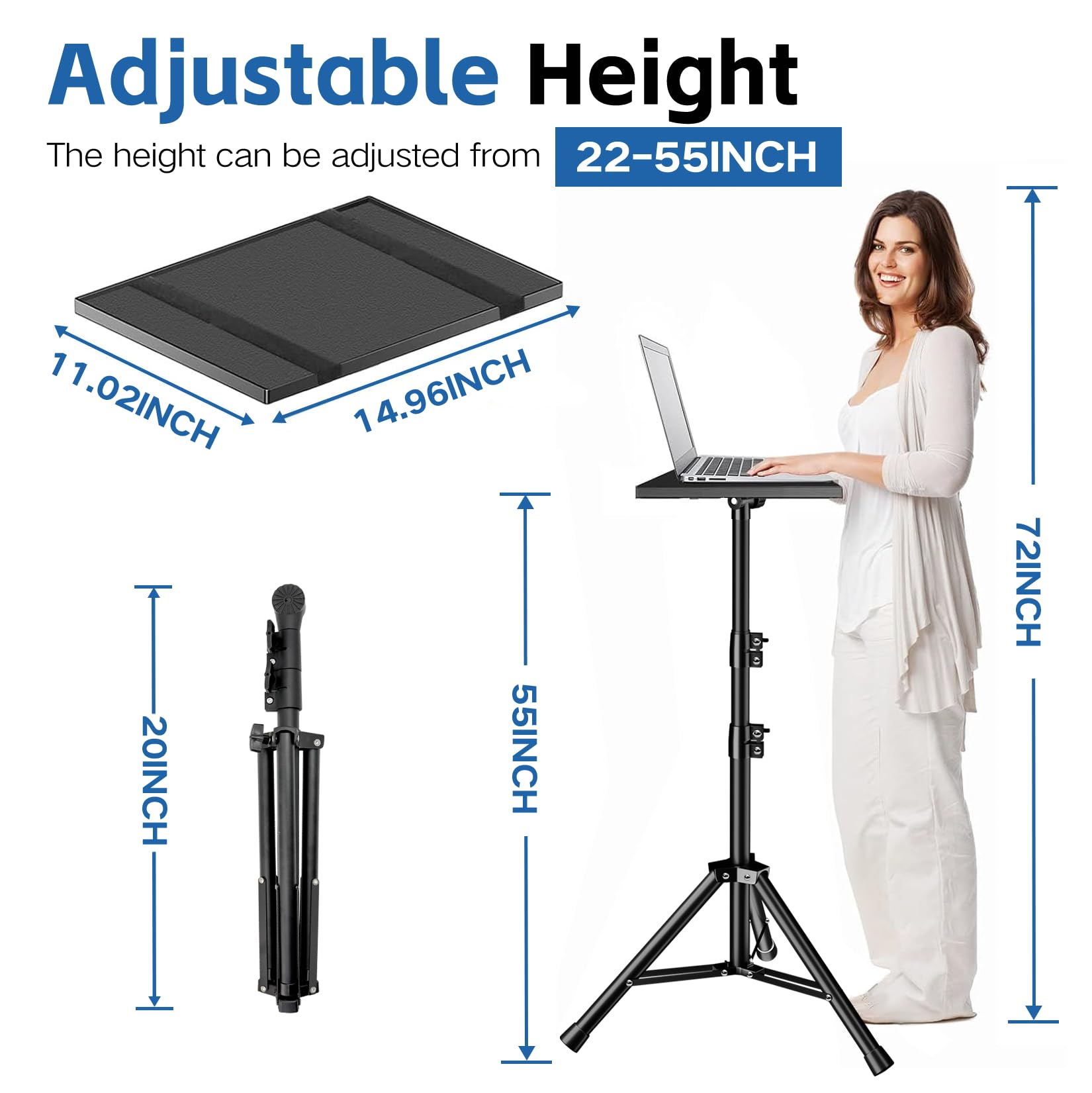 REHOSEUP Projector Stand, 33LB Load Bearing & 22-55" Height Adjustable, for Projector/Laptop/DJ Gear, Outdoor/Office/Studio - Stable Base (Black)