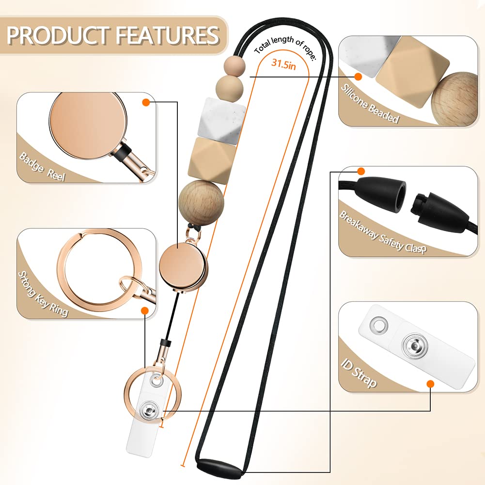 Retractable Lanyards for ID Badges and Keys, Cute Breakaway Teacher Lanyard with Badge Holders and Reels, Durable Silicone Beaded Lanyard for Women, Nurses, Office with 2 Waterproof Card Holders