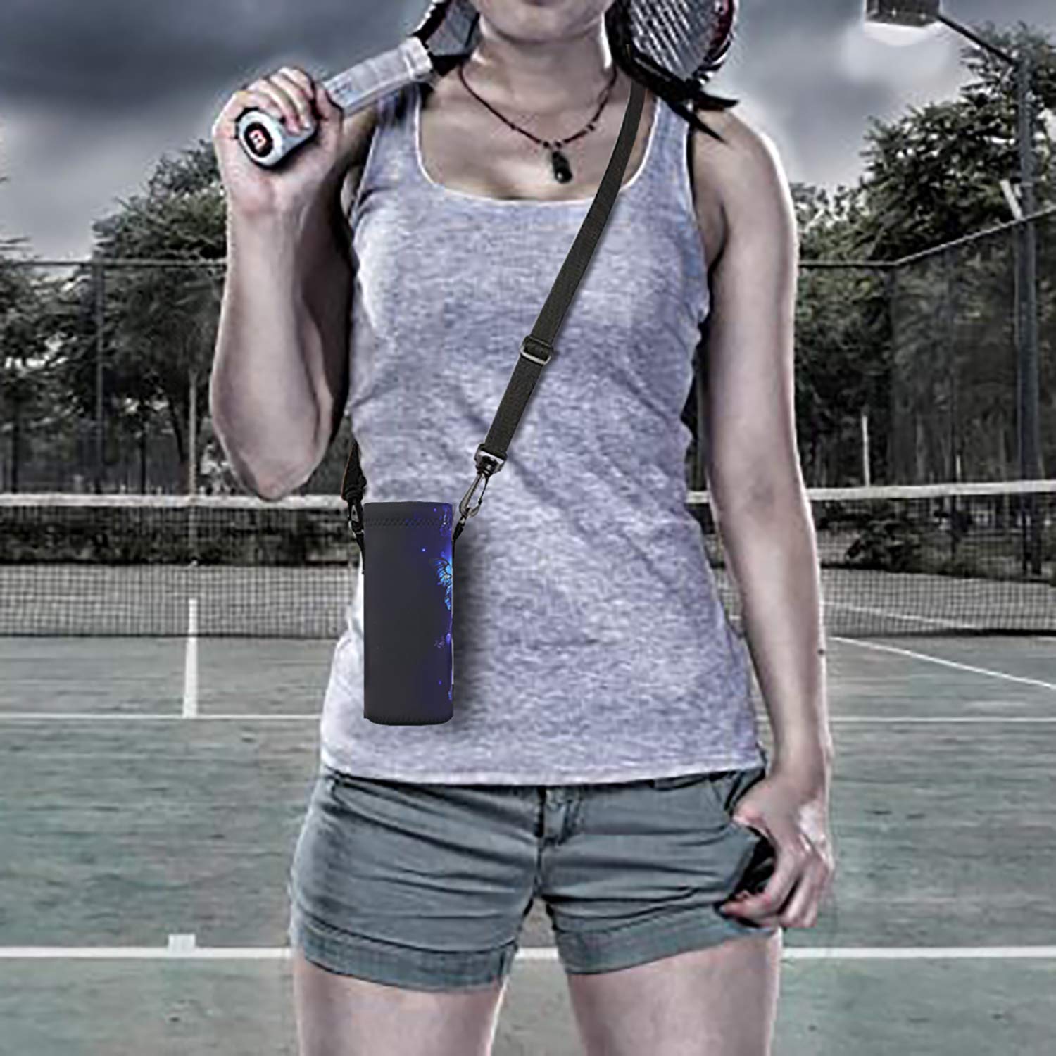 RICHEN Neoprene Water Bottle Carrier Bag with Adjustable Shoulder Strap, Insulated for 750ml/24oz Stainless Steel/Glass/Plastic Bottles (Blue Butterflies, 750ml)