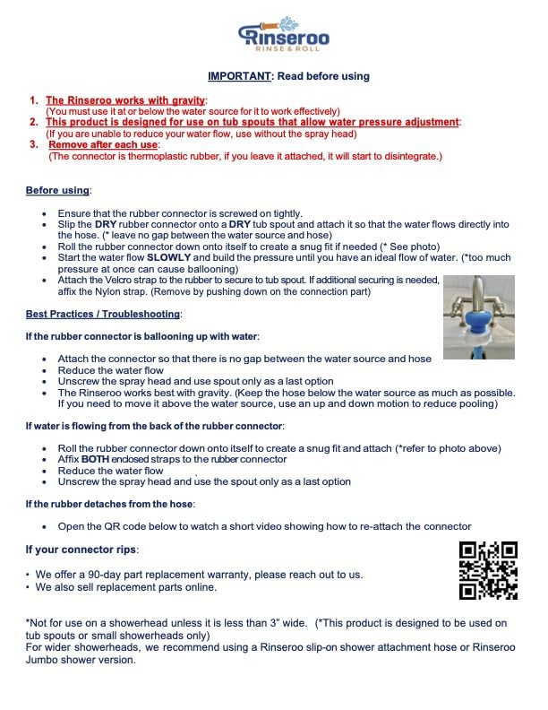 • PERFECT FIT: The Rinseroo Tub Version instantly attaches to your bathroom faucet attachment (up to 3' in diameter). Our tub faucet sprayer attachment has a portable design and moves from tub to tub with ease!