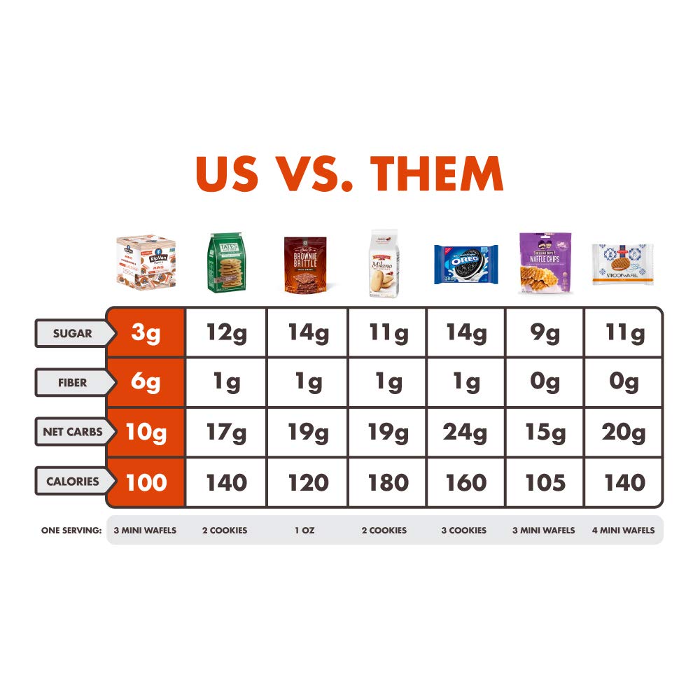 • Low Carb, Low Sugar, Low Calorie Snacks: Contains 1g of Sugar, Low Calories and 5g of Total Carbohydrates in each mini stroopwafel