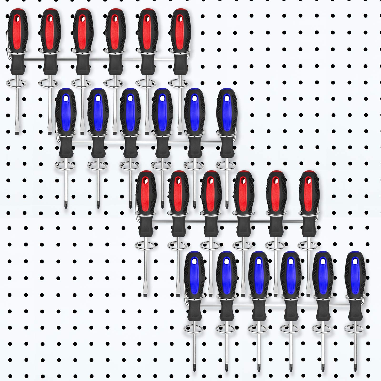 • Ring style design: each pegboard metal hook has 12 ring style pegboard hooks, and each side can be placed 6 rings, they can store screwdrivers, pliers and other daily necessities, very suitable for hanging light items and common tools, saving time and space