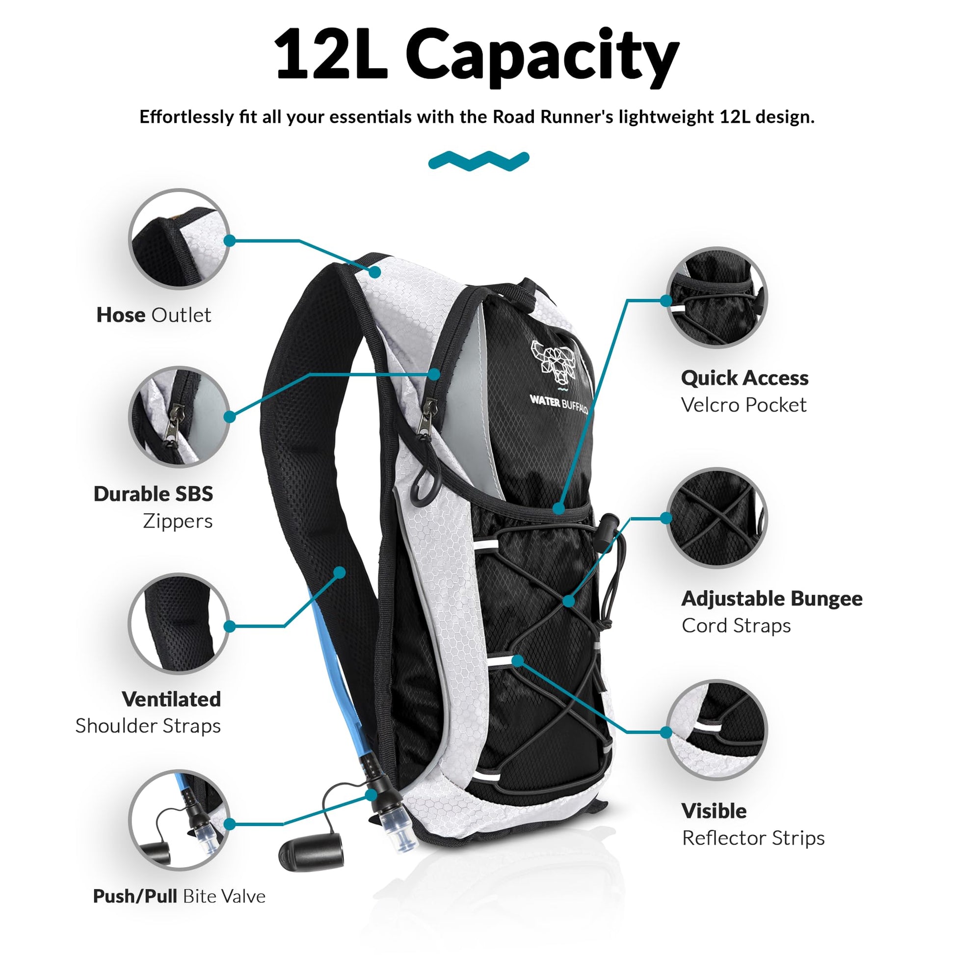 Road Runner Hydration Backpack – Lightweight Water Backpack with 2L Bladder - 12L Hydration Pack for Running, Hiking, Cycling & Outdoor Adventures