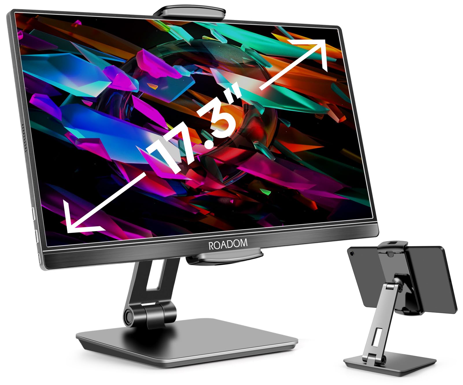 • Enjoy Hands-Free Convenience with Our Versatile Tablet Stand: Designed to accommodate a wide range of devices, including phones,tablets,and portable monitors from 4.7-17.3'', our tablet holder is perfect for a variety of activities. From cooking and exercising to watching movies, live streaming, vlogging, playing games, reading, typing, video conferences, online education, and more,our portable monitor stand allows you to enjoy hands-free convenience wherever you go