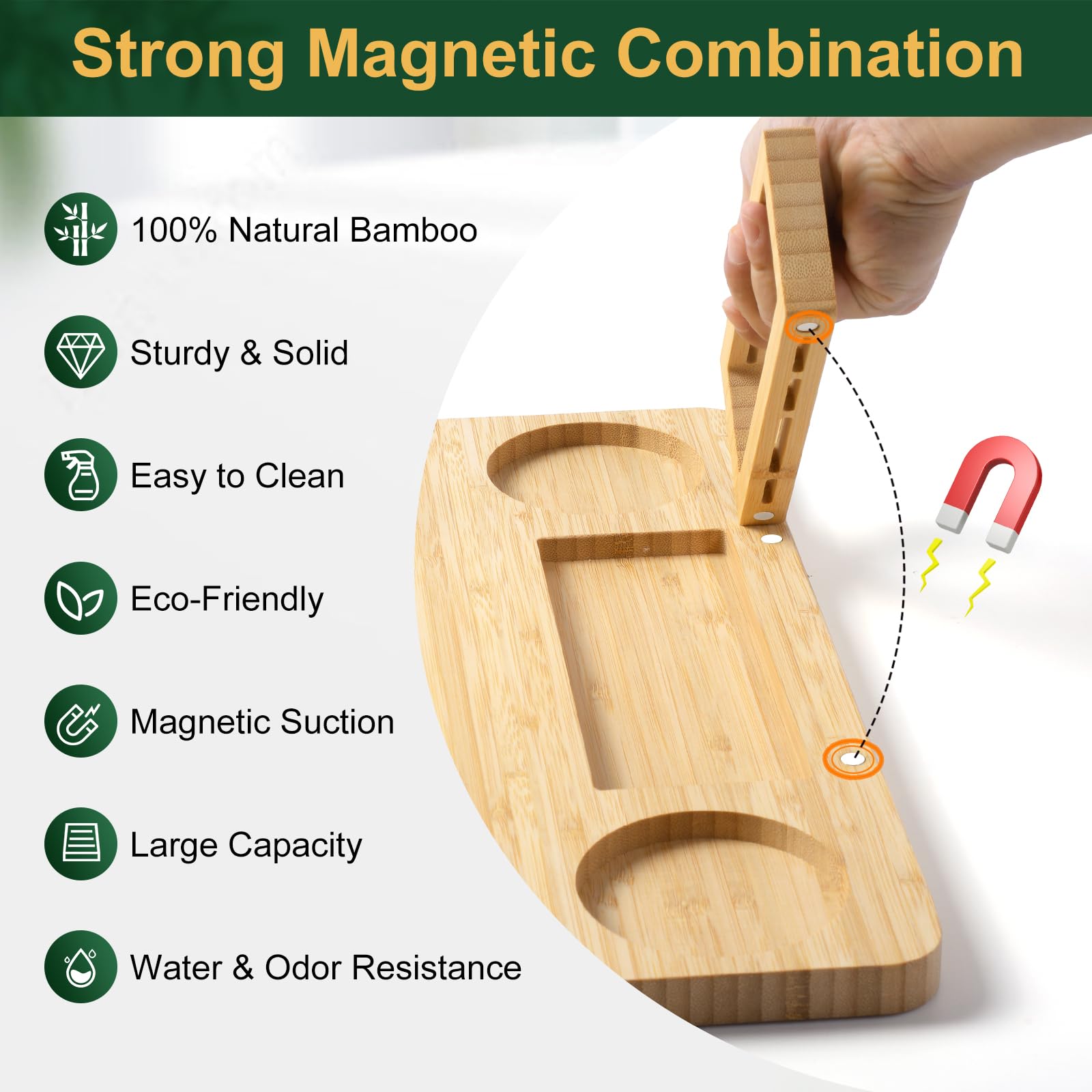 • ECO-FRIENDLY AND EASY TO CLEAN - Using bamboo as the main material improves food safety, while its non-porous and smooth surface is resistant to liquids, so it is not easily deformed and does not absorb odors or stains. It is the best choice for environmentalists.