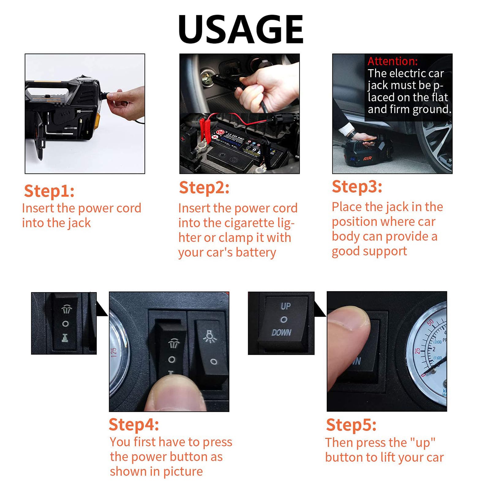 • Auto-Lift & Time-Saving: 12V electric car jack lifts 5-ton vehicles up to 17.7' in 60 seconds. High hydraulic efficiency outperforms manual jacks. Powerful motor suits sedans, SUVs, and trucks. Easy to use—even first-time users can lift with confidence