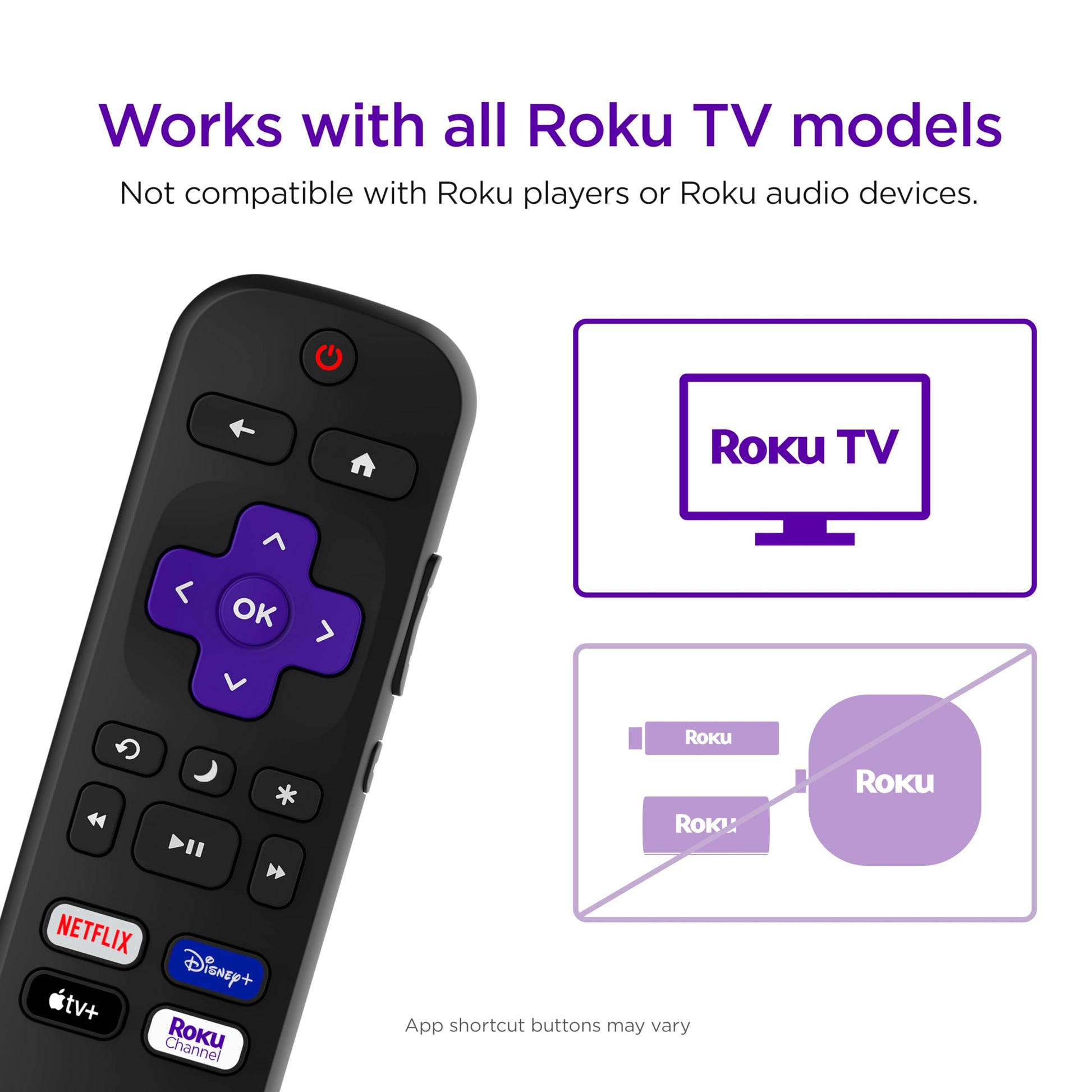 Details: Looking to replace a lost or dog-chewed Roku TV remote? Skip the knockoffs and stream easy with the most affordable remote made by Roku for Roku TV. Power up your TV, adjust the volume, and more. Setting up your Roku TV remote is easy right out of the box. Just pull the tab on the back of the remote, and you’re good to go. Simply stream all your favorite apps with a push of a button, thanks to the pre-set shortcuts. Roku TV Remote is compatible with all Roku TV models. Batteries included. Not compatible with Roku players.