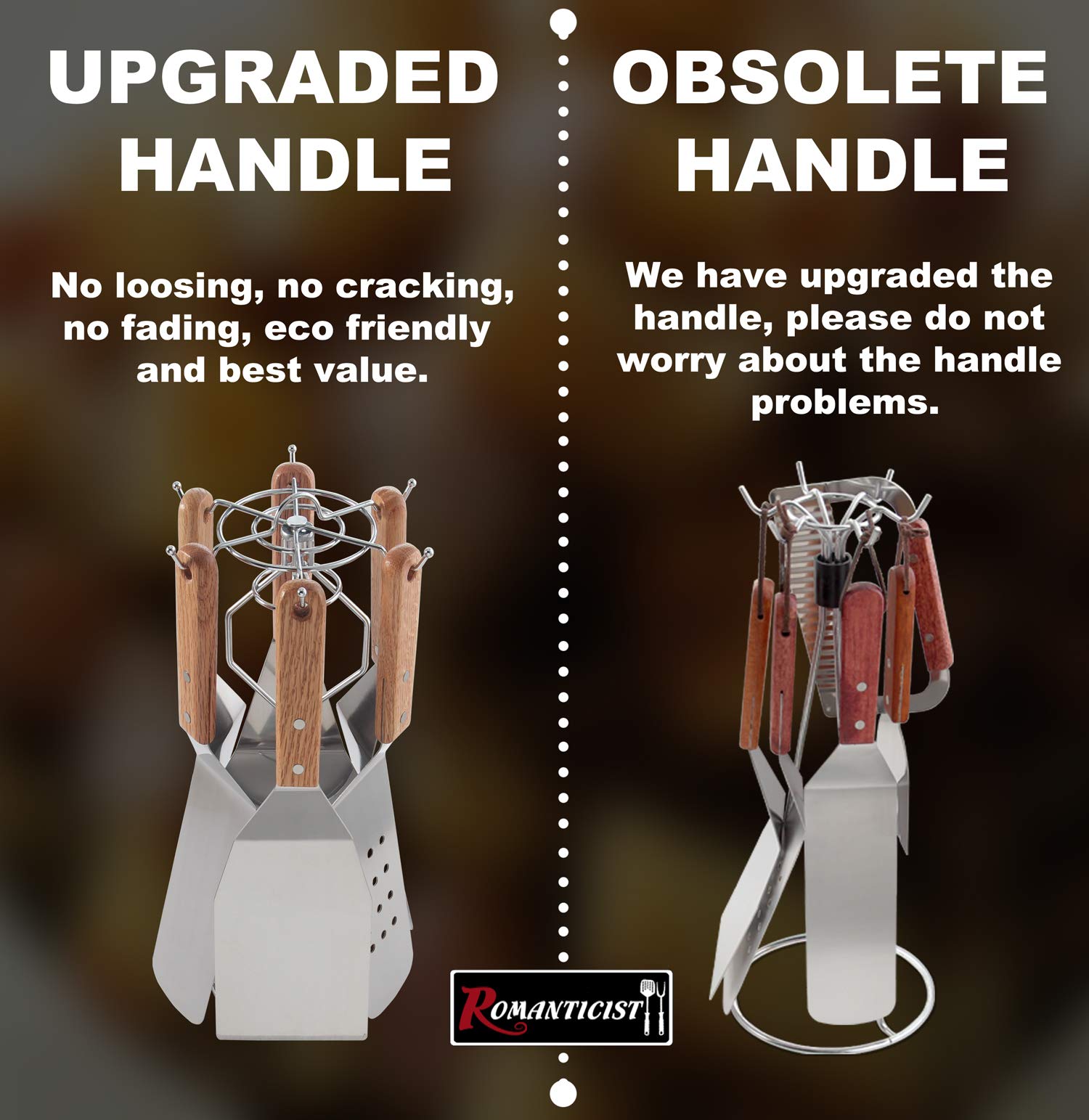 • Professional Grade Griddle Tools - Made with high quality stainless steel and premium solid wood being upgraded to no more loose, no more crack, no more fade.