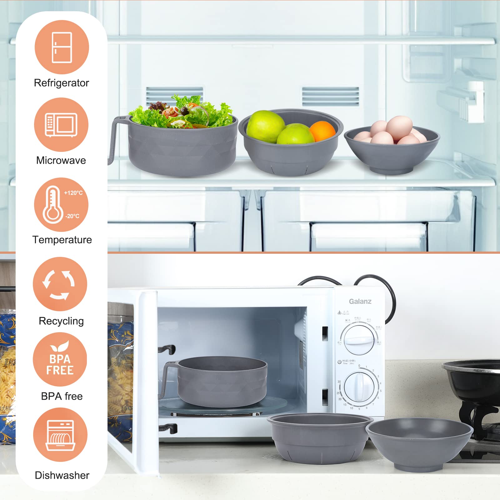 • 【ECO-FRIENDLY】The ramen cooker bowl is made from wheat straw (natural organic composite) and food-grade PP. Unlike some other containers or accessories, this lightweight rapid ramen cooker is portable and easy to store. It’s BPA free, gluten-free, non-toxic, odorless and eco-friendly. Never use it in BBQ and convection mode.