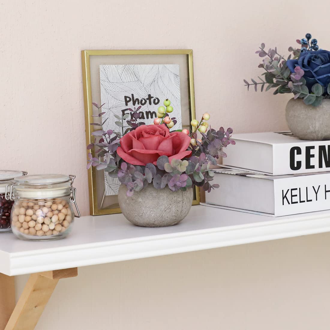Rosscer Artificial Flowers Kit with Pot, Combination of Fake Silk Pink Roses and Greenery,Small Plant Potted Decor for Offices,Bookshelf,Bedroom, Living Room,Party,Wedding Decorations