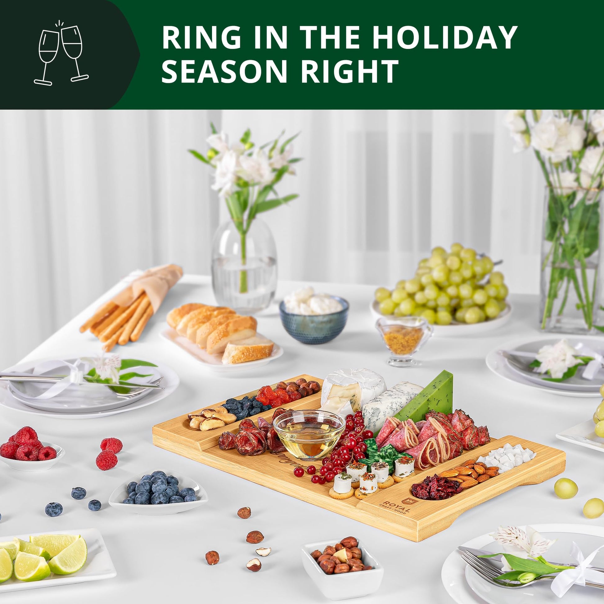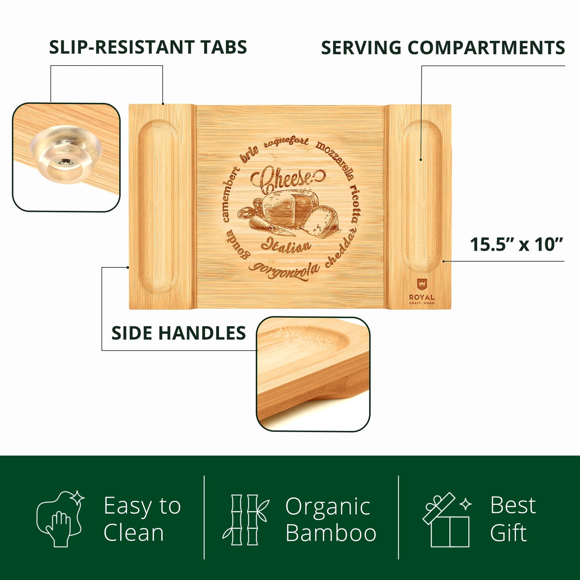 ROYAL CRAFT WOOD Charcuterie and Cheese Board - Large Bamboo Cheese Board - Serving Tray Platter - House Warming Gifts New Home, Gifts for Dad Fathers Day Dad Gifts from Daughter Son Wife - 15.5"x10"