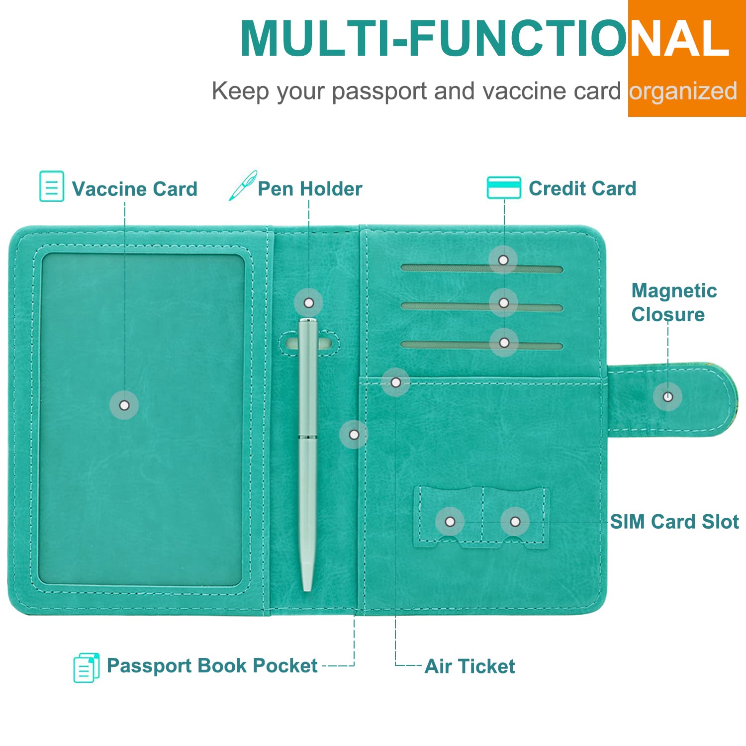 • Light And Slim: RSAquar passport holder and vaccine card holder is the perfect size to travel with. With a slim and light design, it is easy to carry travel documents around when traveling. You can put it in to your bags or large pockets on your coat, ideal for traveling or business trip.