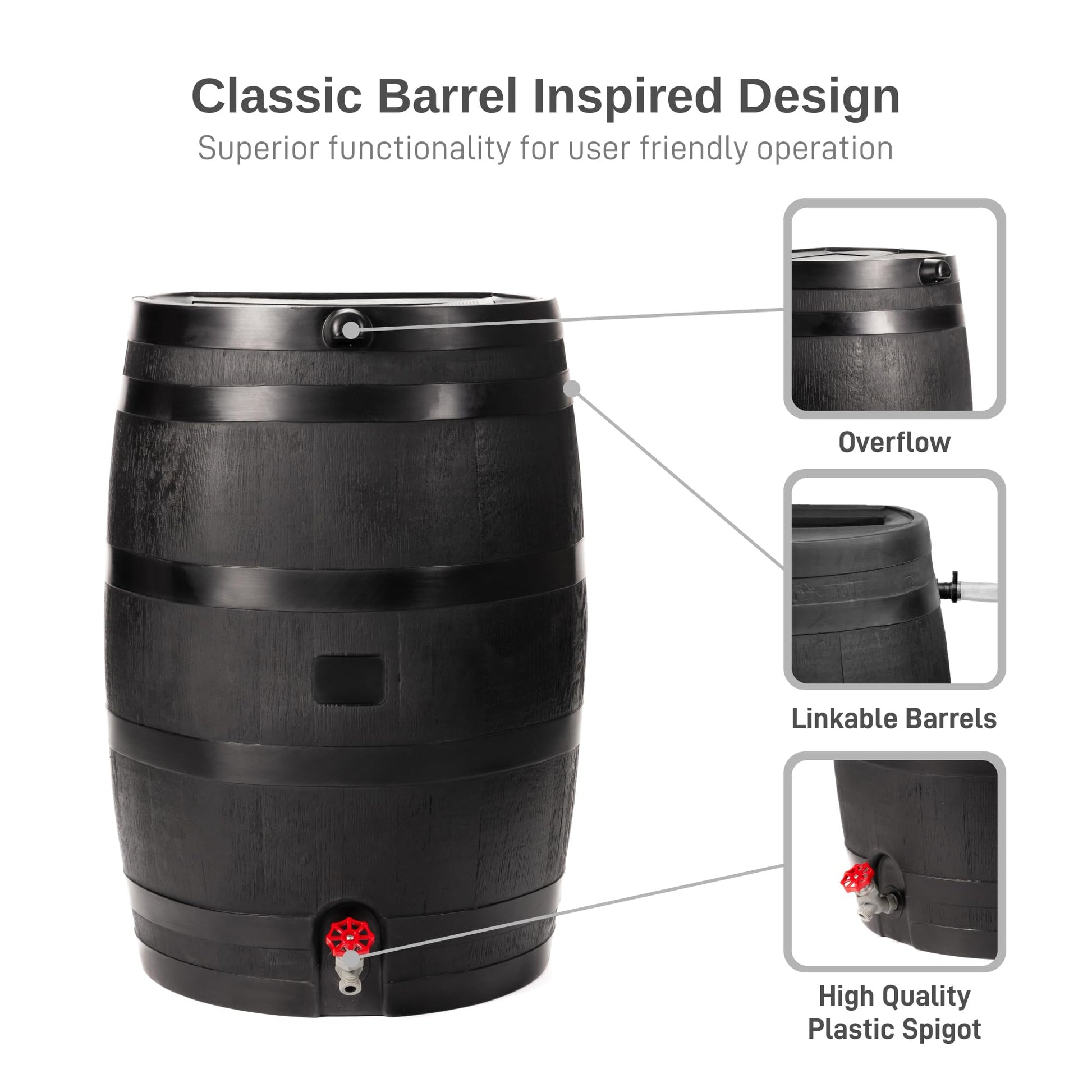 50-Gallon Capacity: Provides ample storage for harvested rainwater, ideal for watering gardens, lawns, and plants.