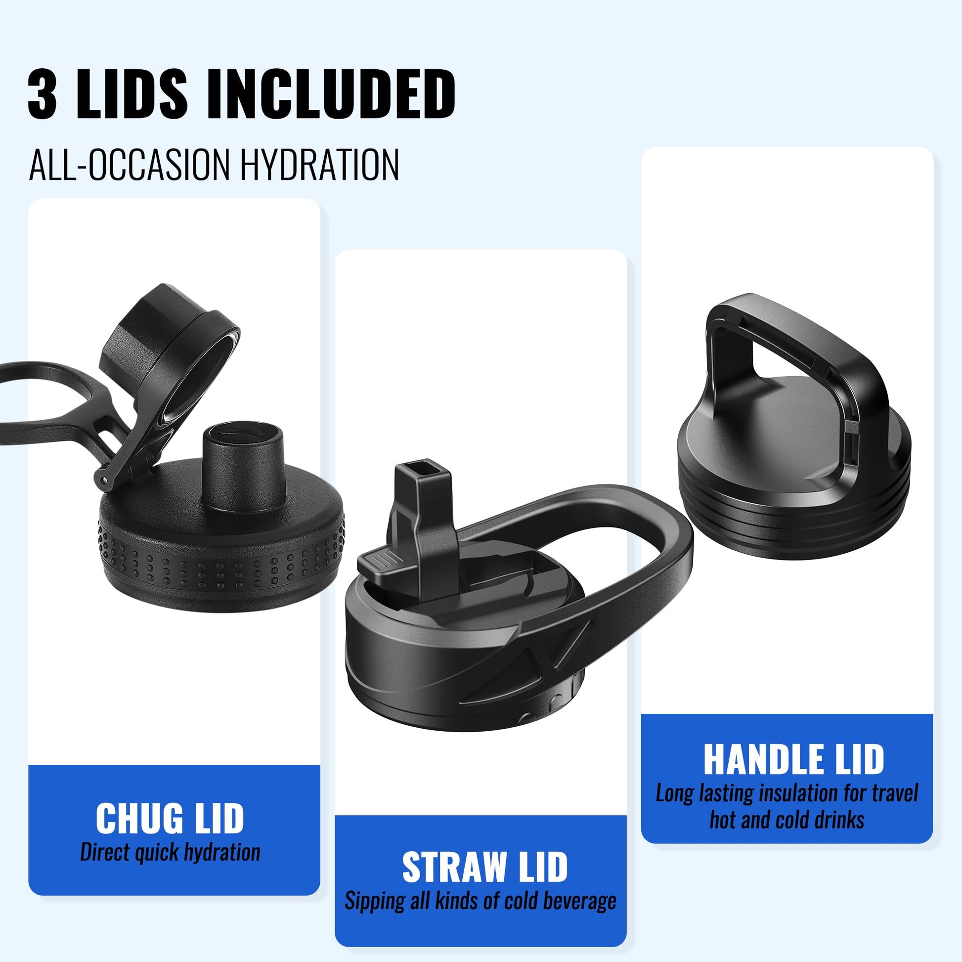 • 3 LIDS LEAKPROOF DESIGN: The 32 oz water bottle with straw is equipped with 3 individual wide-mouth lids to serve all hydration needs, Sip hot drinks, all caps allow for easy one-handed or hands-free sipping when you are busy or on-the-go