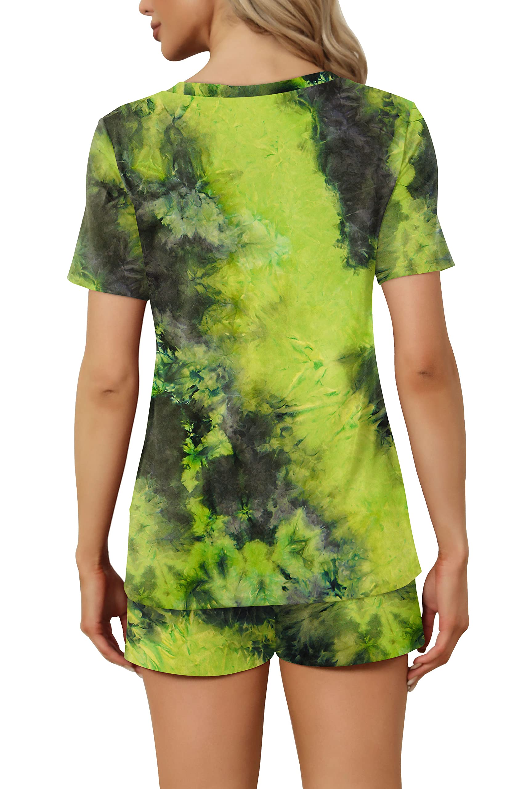 RUBZOOF Women Tracksuit Set with Pockets Short Sleeve V Neck Casual Summer Tie Dye Pajamas Lounge Sets M