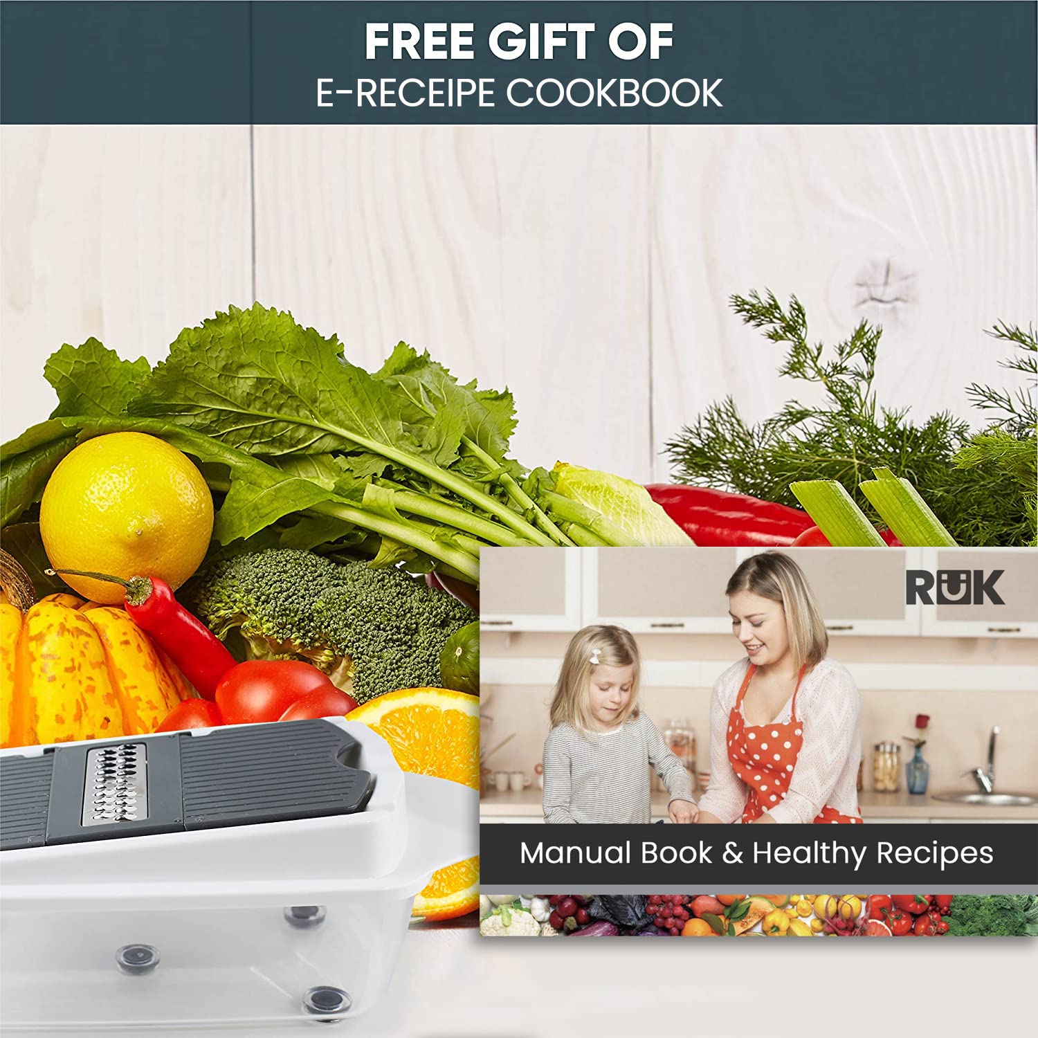 RüK Vegetable Chopper Slicer Onion Dicer, Multi 22-in-1 Veggie Mandoline Food Cutter for Tomato Fruit with Lemon Squeezer, E-Recipe, 11 Blades, Egg Separator & Slicer, Container