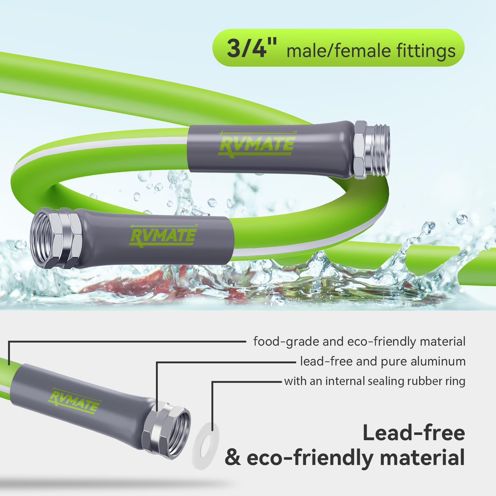 • 🚩【More Durable & Kink-resistant】 Made of 3 layers of premium hybrid polymer material, this RVMATE water hose is designed to be resistant to abrasions and kinking. Whether the hose is bent or stepped on, it can quickly recover its elasticity and provide a stable water flow.
