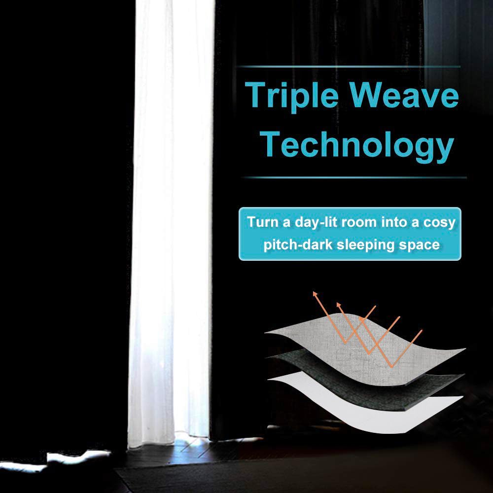 • WELL MADE - All you need are included in the package. Package includes 1 panel ( each panel measures W 26' x L 69' ) + sticky strap. Curtains made of triple layers of blackout fabric, same fabic on both sides.