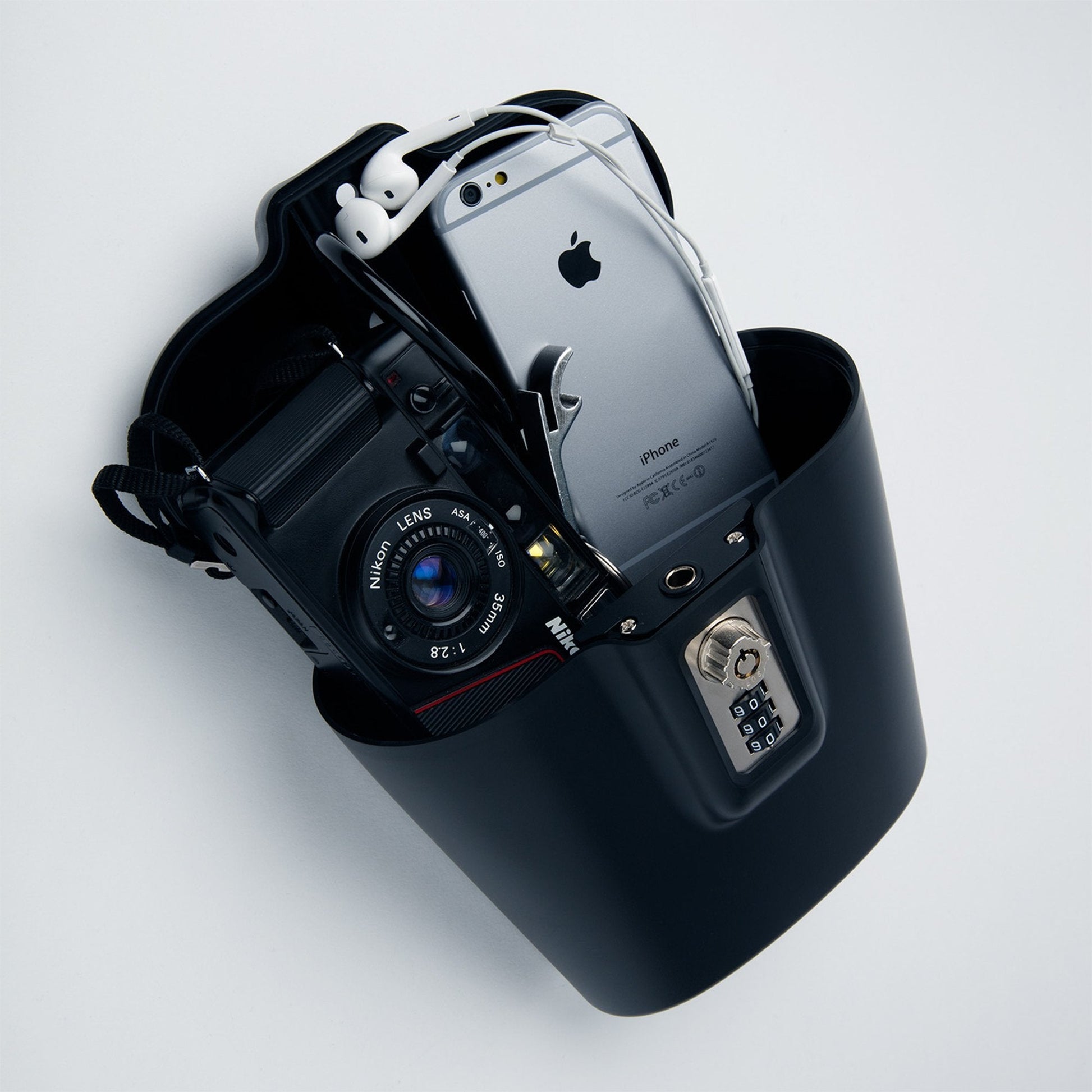 • Earphone / charger access allows you to listen to music or charge your devices while securely locked.