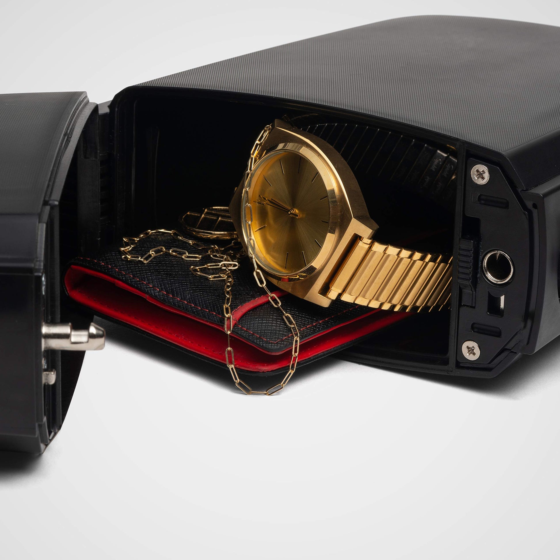 • Open safe using either resettable 3-digit custom combination code or unique key (comes with 2)
