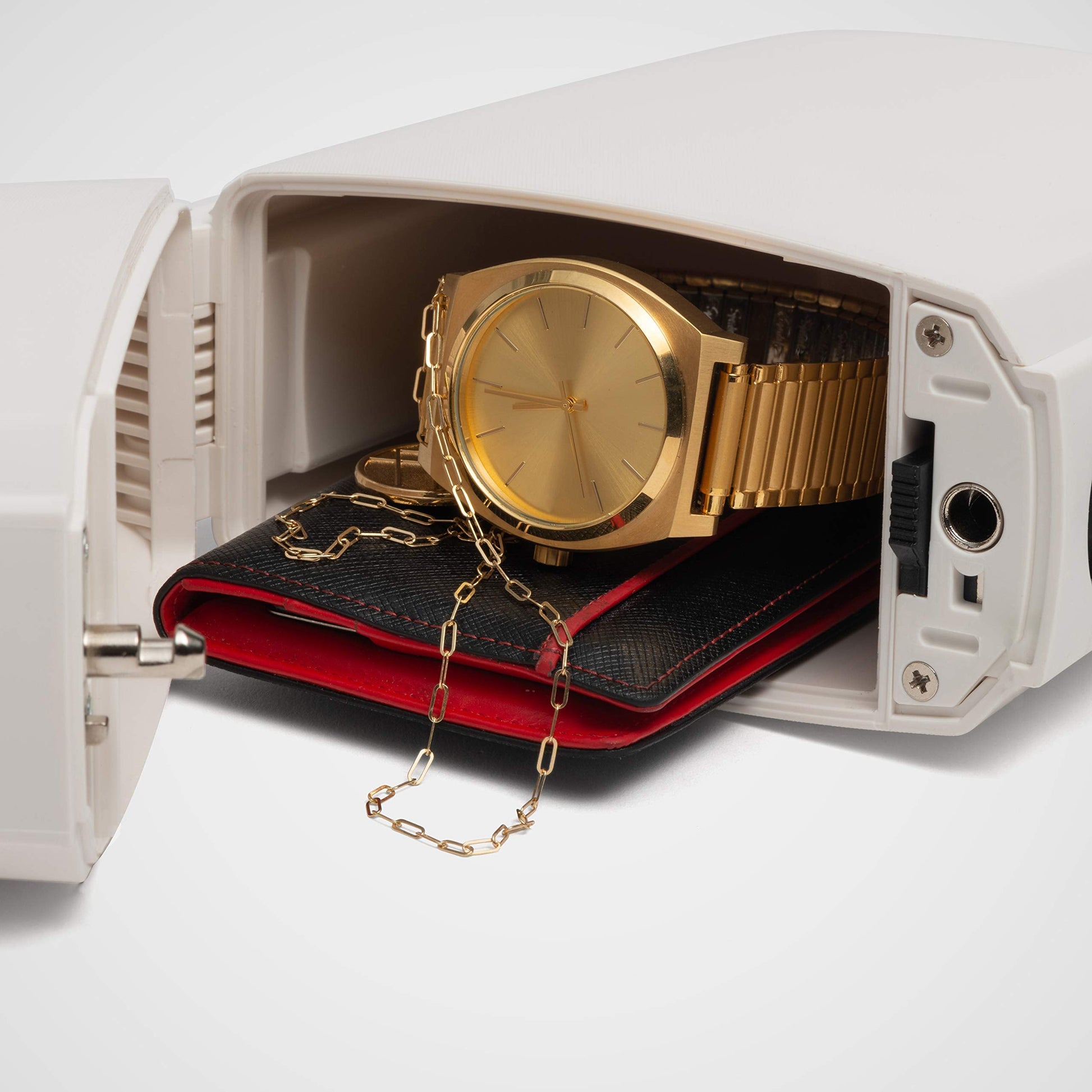 SAFEGO Portable Indoor/Outdoor Lock Box Safe with Key and Combination Access (Compact, White)