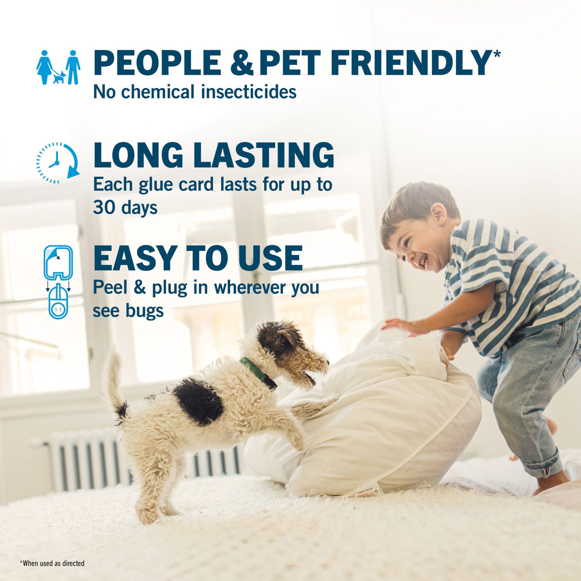 Details: With Safer Home Indoor Plug-In Fly Trap Refill Packs, you can enjoy non-stop protection from flies, fruit flies, moths, gnats, and more. Simply peel the backing off the StickyTech glue card and insert it into the trap. Plug the trap into a standard outlet and use the fly trap indoors near common insect hotspots, including near houseplants, exterior doors, pet areas, in kitchens, bedrooms, and other areas of your home. Once drawn in by the light of the trap, insects get stuck fast to the StickyTech Glue Cards and are securely held until the time of disposal. The unique glue placement on the wall side of the card keeps insects trapped and out of sight. StickyTech Glue Cards contain no synthetic insecticides and are the ideal choice for homes with children and pets.